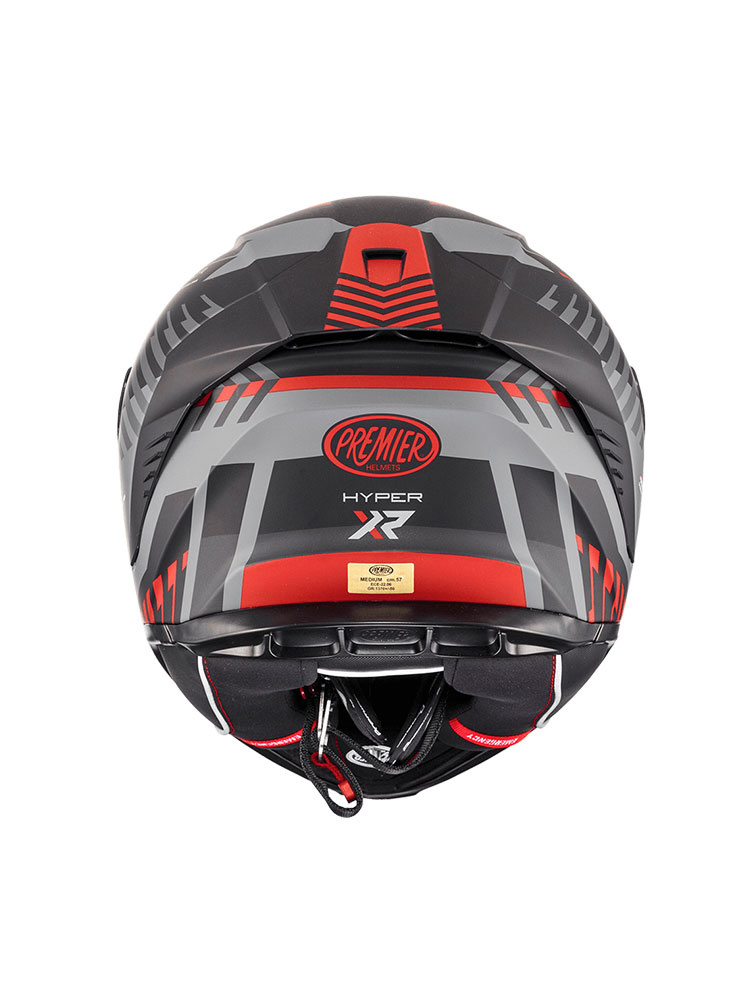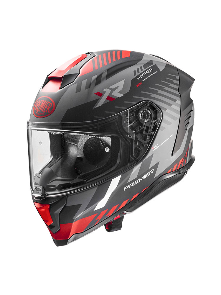 Premier Hyper, to kask motocyklowy integralny, oferujący wysoki poziom bezpieczeństwa i komfort użytkowania. Został opracowany zgodnie z europejskimi standardami bezpieczeństwa, o czym świadczy homologacja ECE (norma 22.06). Skorupa kasku, została wykonana z innowacyjnego kompozytu DCA, który nadaje konstrukcji lekkość oraz wysoki poziom wytrzymałości. Kask integralny Hyper, zapewnia szerokie pole widzenia w różnych warunkach pogodowych. W słoneczne dni, twarz motocyklisty przed szkodliwymi promieniami ultrafioletowymi, zabezpiecza wyposażony w filtr UV wizjer kasku. Jego dodatkową zaletą jest przystosowanie do wpięcia Pinlocka, który zapobiega procesowi parowania szybki podczas jazdy w niskich temperaturach. Za pomocą mechanizmu Quick Release System wizjer można wymienić w kilka sekund, a cały proces odbywa się bez użycia jakichkolwiek narzędzi. Kask integralny Premier Hyper posiada wewnętrzną wyściółkę Sanitized, która została wykonana z hipoalergicznego materiału i odpowiada za optymalne odprowadzanie wilgoci. Zastosowane zapięcie typu DD (Double-D), dzięki czemu kask można użytkować także na zamkniętych obiektach wyścigowych. Kask integralny Hyper, jest przyjazny dla osób noszących okulary. Może stanowić alternatywę do grupowych wypraw motocyklowych, gdyż jego konstrukcja jest przystosowana do montażu opcjonalnego interkomu motocyklowego.