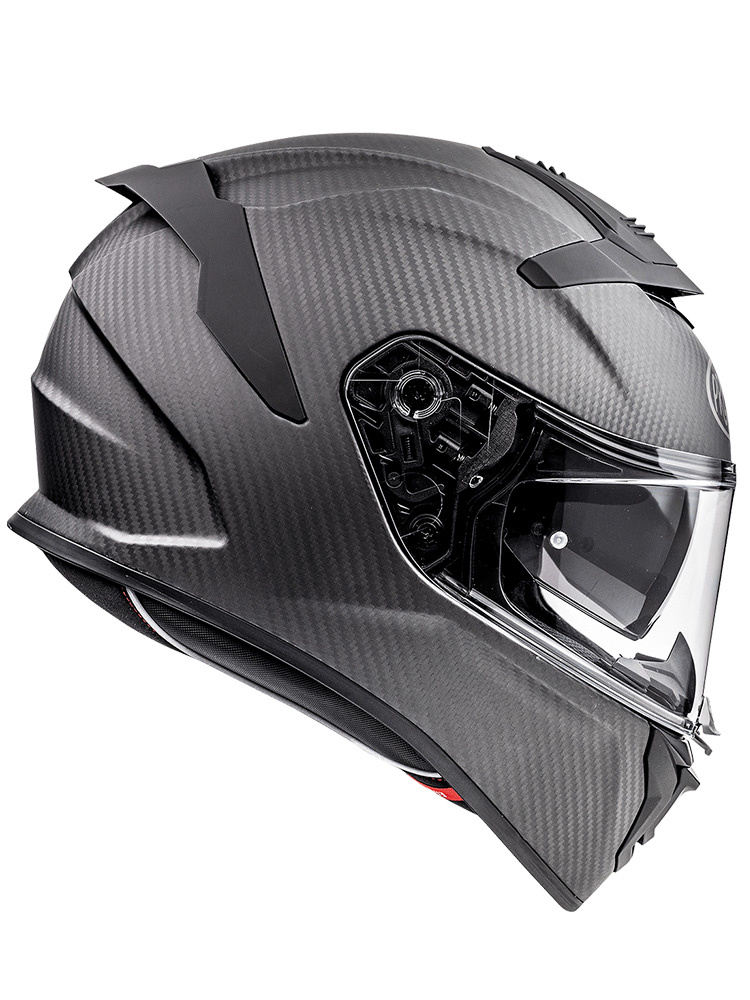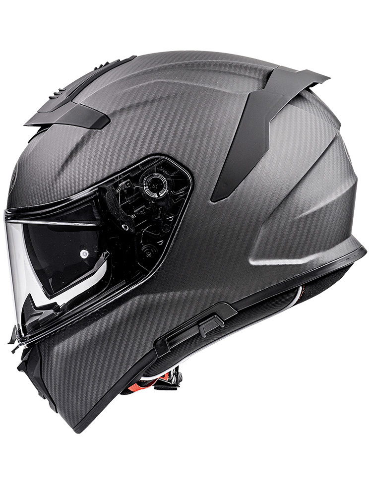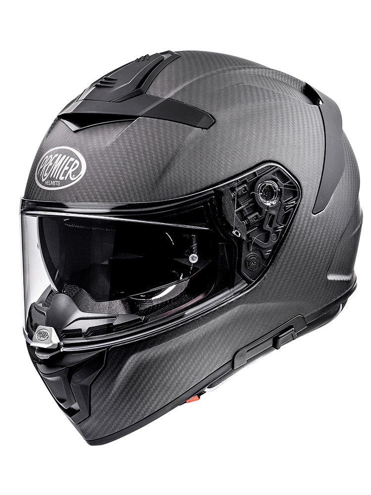 Premier Devil Carbon, to model dla motocyklistów poszukujących kasku integralnego, oferującego bezpieczeństwo i komfort użytkowania na wysokim poziomie. Produkowana w dwóch wielkościach skorupa kasku, została wykonana z Carbonu oraz żywicy epoksydowej. Takie połączenie sprawia, że konstrukcja wyróżnia się lekkością i wytrzymałością. Wnętrze kasku zostało wypełnione hipoalergicznym materiałem, z którego wykonano wyściółkę. W aspekcie komfortu użytkowania warto również wspomnieć o piance EPS o zróżnicowanej gęstości. Za sprawą poliwęglanowego wizjera, który wzbogacono o filtr UV oraz przystosowano do wpięcia Pinlocka, kask integralny Premier Devil Carbon, gwarantuje szerokie pole widzenia w różnych warunkach pogodowych. Warto dodać, że kask posiada również wysuwaną blendę, która znajdzie zastosowanie podczas jazdy motocyklem w słoneczne dni. O wydajną cyrkulację powietrza, zwłaszcza w wysokich temperaturach zadba system wentylacji, składający się z rozmieszczonych strategicznie otworów wlotowych i wylotowych. Wewnętrzna część kasku została zaopatrzona w antybakteryjną wyściółkę, która jest w pełni wyjmowana i przystosowana do prania. Homologacja ECE 22.06 potwierdza, że kask integralny Premier Devil Carbon zaprojektowano i opracowano według europejskich norm bezpieczeństwa. Warto dodać, że konstrukcja kasku jest przystosowana do montażu opcjonalnego interkomu motocyklowego. Devil Carbon jest także przyjazny dla osób noszących okulary.