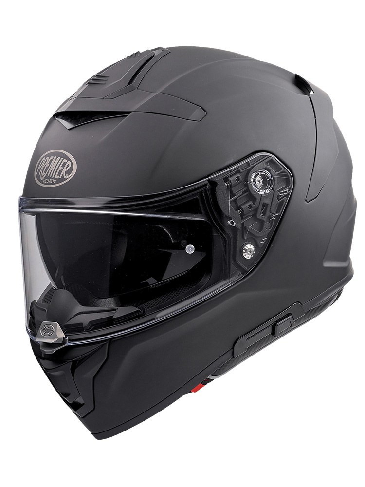 Premier Devil, to model dla motocyklistów poszukujących kasku integralnego, oferującego bezpieczeństwo i komfort użytkowania na wysokim poziomie. Produkowana w dwóch wielkościach skorupa kasku, została wykonana z opracowanego na bazie dwóch rodzajów włókien: węglowego i aramidowego oraz materiału Dyneema, kompozytu DCA i żywicy epoksydowej. Takie połączenie sprawia, że konstrukcja wyróżnia się lekkością i wytrzymałością. Wnętrze kasku zostało wypełnione hipoalergicznym materiałem, z którego wykonano wyściółkę. W aspekcie komfortu użytkowania warto również wspomnieć o piance EPS o zróżnicowanej gęstości. Za sprawą poliwęglanowego wizjera, który wzbogacono o filtr UV oraz przystosowano do wpięcia Pinlocka, kask integralny Premier Devil, gwarantuje szerokie pole widzenia w różnych warunkach pogodowych. Warto dodać, że kask posiada również wysuwaną blendę, która znajdzie zastosowanie podczas jazdy motocyklem w słoneczne dni. O wydajną cyrkulację powietrza, zwłaszcza w wysokich temperaturach zadba system wentylacji, składający się z rozmieszczonych strategicznie otworów wlotowych i wylotowych. Wewnętrzna część kasku została zaopatrzona w antybakteryjną wyściółkę, która jest w pełni wyjmowana i przystosowana do prania. Homologacja ECE 22.06 potwierdza, że kask integralny Premier Devil zaprojektowano i opracowano według europejskich norm bezpieczeństwa. Warto dodać, że konstrukcja kasku jest przystosowana do montażu opcjonalnego interkomu motocyklowego. Devil jest także przyjazny dla osób noszących okulary.
