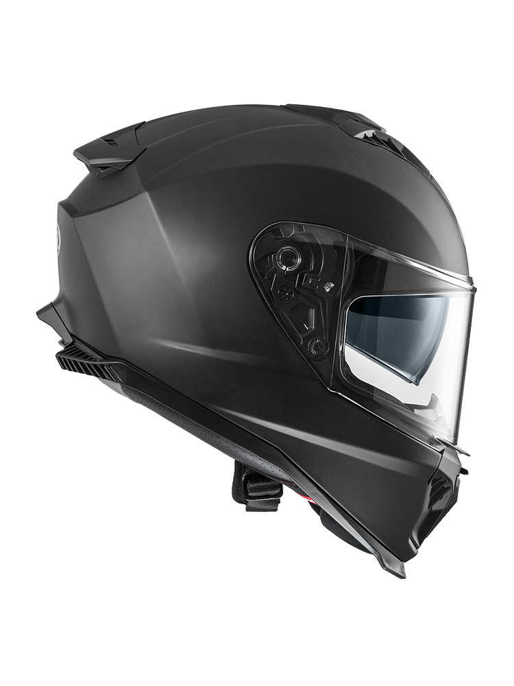 Premier Typhoon to innowacyjny kask integralny, który opracowano z myślą o użytkownikach, mających ograniczony budżet. Wykonana z technopolimeru skorupa kasku, oferuje skuteczną absorpcję energii uderzenia i sprawia, że cała konstrukcja wyróżnia się solidnym wykonaniem. Kask integralny Typhoon to również rozwiązanie dla motocyklistów, którzy chcą mieć szerokie pole widzenia w niemal każdych warunkach pogodowych. W tym celu, model ten zaopatrzono w przystosowany pod montaż Pinlocka (w zestawie) wizjer, który dodatkowo zabezpiecza twarz przed szkodliwymi promieniami ultrafioletowymi. Uwagę przykuwa także zintegrowana blenda, która znajdzie zastosowanie podczas wycieczek motocyklowych w słoneczne dni. Optymalne odprowadzanie wilgoci i potu zapewnia, umieszczona wewnątrz wyściółka z hipoalergicznego materiału. Warto zaznaczyć, że jest ona w pełni wyjmowana, dzięki czemu można ją wyprać po długiej wyprawie motocyklowej. Stały dopływ świeżego powietrza gwarantuje system wentylacji, na który składają się dwa otwory wlotowe i dwa wylotowe. Funkcjonalność tego modelu podkreśla, przystosowanie do montażu opcjonalnego interkomu motocyklowego. Osoby mające wadę wzroku, również mogą bez problemu użytkować kask integralny Premier Typhoon, gdyż jest on przyjazny dla użytkowników noszących okulary.