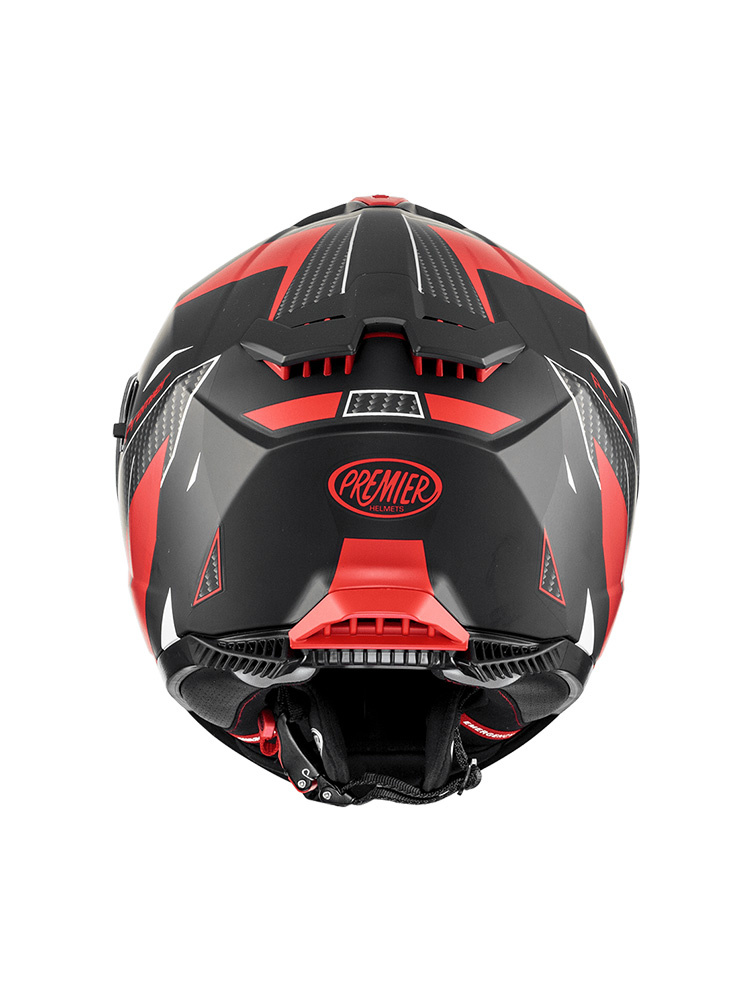Premier Typhoon to innowacyjny kask integralny, który opracowano z myślą o użytkownikach, mających ograniczony budżet. Wykonana z technopolimeru skorupa kasku, oferuje skuteczną absorpcję energii uderzenia i sprawia, że cała konstrukcja wyróżnia się solidnym wykonaniem. Kask integralny Typhoon to również rozwiązanie dla motocyklistów, którzy chcą mieć szerokie pole widzenia w niemal każdych warunkach pogodowych. W tym celu, model ten zaopatrzono w przystosowany pod montaż Pinlocka (w zestawie) wizjer, który dodatkowo zabezpiecza twarz przed szkodliwymi promieniami ultrafioletowymi. Uwagę przykuwa także zintegrowana blenda, która znajdzie zastosowanie podczas wycieczek motocyklowych w słoneczne dni. Optymalne odprowadzanie wilgoci i potu zapewnia, umieszczona wewnątrz wyściółka z hipoalergicznego materiału. Warto zaznaczyć, że jest ona w pełni wyjmowana, dzięki czemu można ją wyprać po długiej wyprawie motocyklowej. Stały dopływ świeżego powietrza gwarantuje system wentylacji, na który składają się dwa otwory wlotowe i dwa wylotowe. Funkcjonalność tego modelu podkreśla, przystosowanie do montażu opcjonalnego interkomu motocyklowego. Osoby mające wadę wzroku, również mogą bez problemu użytkować kask integralny Premier Typhoon, gdyż jest on przyjazny dla użytkowników noszących okulary.