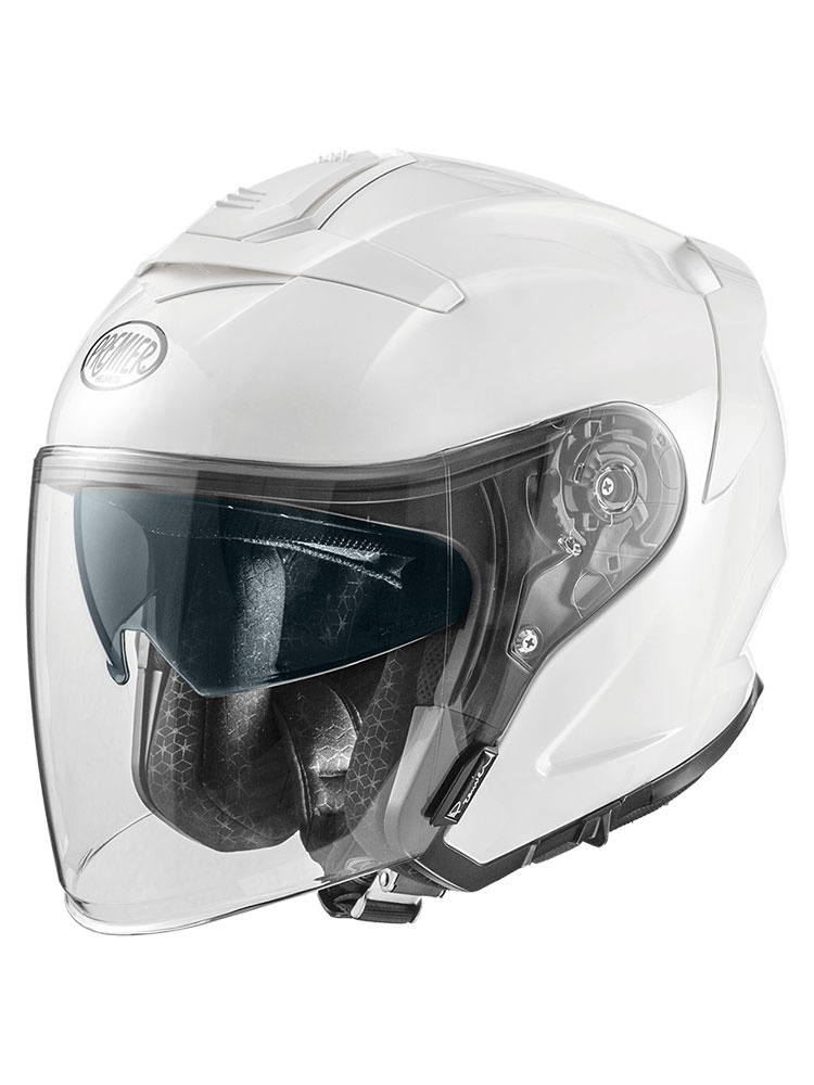 Premier JT5 to kask otwarty, stworzony z myślą o zapewnieniu maksymalnego komfortu i bezpieczeństwa podczas jazdy. Jego wyjątkowa konstrukcja opiera się na skorupie wykonanej z zaawansowanego kompozytu DCA, który łączy włókno węglowe, włókno aramidowe oraz Dyneemę. Dzięki temu kask jest nie tylko wyjątkowo lekki, ale również oferuje wysoką odporność na uderzenia. Odporny na zarysowania wizjer z filtrem UV gwarantuje doskonałą widoczność oraz ochronę przed szkodliwymi promieniami ultrafioletowymi. Innowacyjny system Quick Release, umożliwia szybką i łatwą wymianę wizjera bez konieczności stosowania narzędzi, co sprawia, że dostosowanie kasku do zmieniających się warunków atmosferycznych staje się niezwykle proste. Dodatkowo, zintegrowana blenda przeciwsłoneczna daje możliwość dostosowania oświetlenia, zapewniając optymalny komfort podczas jazdy w różnych warunkach świetlnych. Umieszczona wewnątrz kasku wypinana wyściółka z antybakteryjnego materiału, odprowadza wilgoć i pot z twarzy użytkownika. Kask otwarty Premier JT5 został również zaprojektowany z myślą o optymalnej wentylacji, za którą odpowiadają otwory wlotowe w górnej części i otwory wylotowe umieszczone z tyłu. Zapięcie typu Microlock gwarantuje szybkie i bezpieczne dopasowanie. Kask otwarty Premier JT5 jest również przyjazny dla osób noszących okulary i przystosowany do montażu opcjonalnego interkomu motocyklowego.
