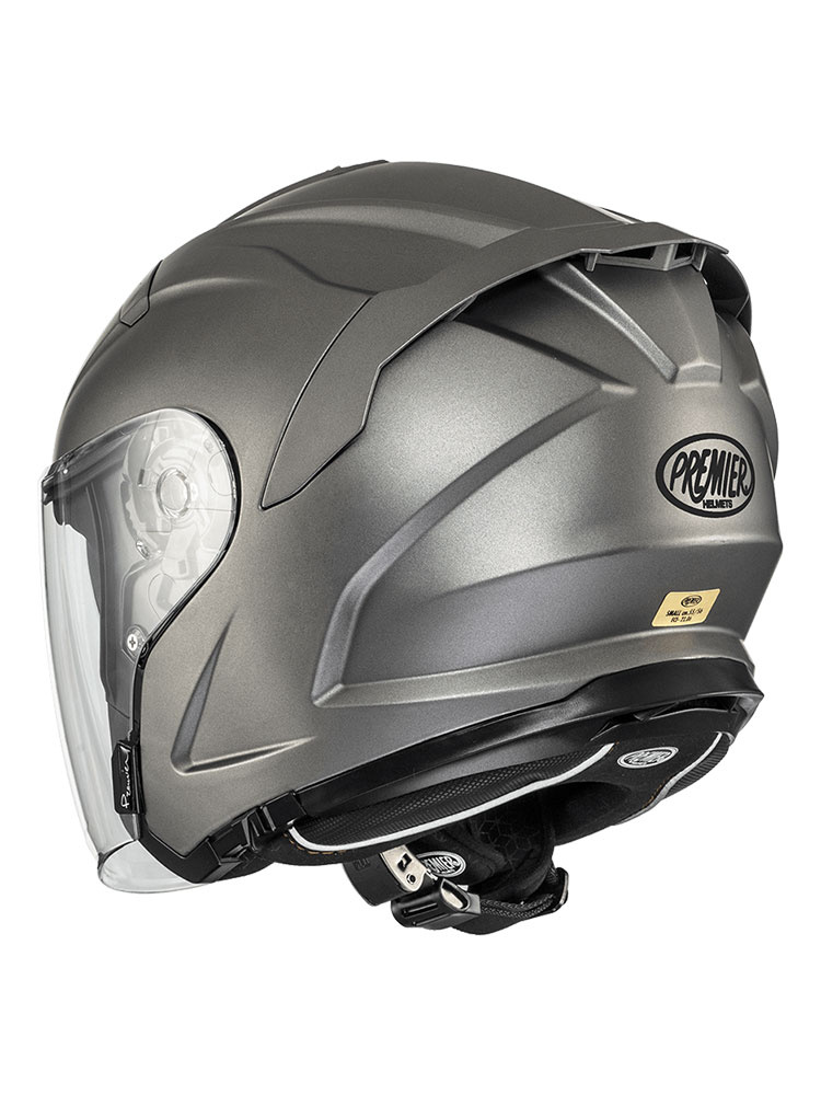 Premier JT5 to kask otwarty, stworzony z myślą o zapewnieniu maksymalnego komfortu i bezpieczeństwa podczas jazdy. Jego wyjątkowa konstrukcja opiera się na skorupie wykonanej z zaawansowanego kompozytu DCA, który łączy włókno węglowe, włókno aramidowe oraz Dyneemę. Dzięki temu kask jest nie tylko wyjątkowo lekki, ale również oferuje wysoką odporność na uderzenia. Odporny na zarysowania wizjer z filtrem UV gwarantuje doskonałą widoczność oraz ochronę przed szkodliwymi promieniami ultrafioletowymi. Innowacyjny system Quick Release, umożliwia szybką i łatwą wymianę wizjera bez konieczności stosowania narzędzi, co sprawia, że dostosowanie kasku do zmieniających się warunków atmosferycznych staje się niezwykle proste. Dodatkowo, zintegrowana blenda przeciwsłoneczna daje możliwość dostosowania oświetlenia, zapewniając optymalny komfort podczas jazdy w różnych warunkach świetlnych. Umieszczona wewnątrz kasku wypinana wyściółka z antybakteryjnego materiału, odprowadza wilgoć i pot z twarzy użytkownika. Kask otwarty Premier JT5 został również zaprojektowany z myślą o optymalnej wentylacji, za którą odpowiadają otwory wlotowe w górnej części i otwory wylotowe umieszczone z tyłu. Zapięcie typu Microlock gwarantuje szybkie i bezpieczne dopasowanie. Kask otwarty Premier JT5 jest również przyjazny dla osób noszących okulary i przystosowany do montażu opcjonalnego interkomu motocyklowego.
