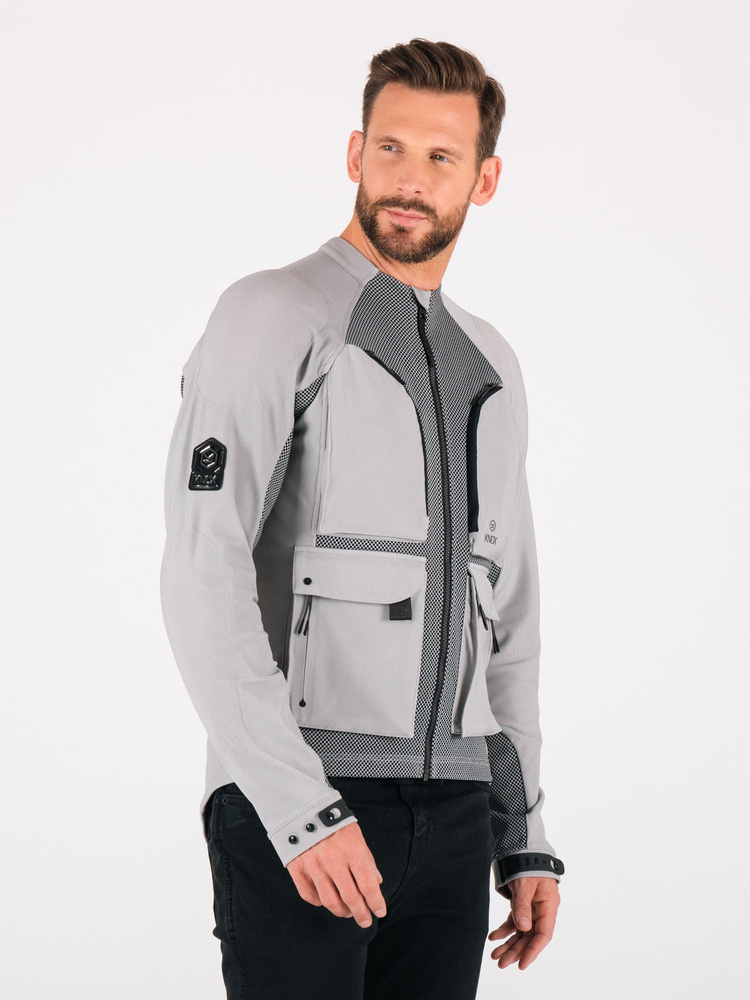 Knox Tor to doskonałej jakości koszula z ochraniaczami, którą bez przeszkód możesz założyć pod inną kurtkę lub nosić jako samodzielną warstwę w najcieplejsze dni sezonu motocyklowego. Lekką i przewiewną konstrukcję wyprodukowano z połączenia nylonu, spandexu oraz meshu, co przekłada się na komfortowe dopasowanie, swobodę ruchów oraz wyjątkową odporność na ścieranie i przebicia. Model został odpowiednio przetestowany i uzyskał certyfikat bezpieczeństwa klasy AA, który informuje o tym, że jest w stanie wytrzymać poślizg na dystansie około 35 metrów. Knox Tor wyposażono w certyfikowane ochraniacze ramion, łokci i pleców Micro-Lock Compact poziomu 2, które skutecznie minimalizują powstanie poważniejszych kontuzji podczas upadku z motocykla. Poziom oferowanej ochrony można zwiększyć poprzez doposażenie koszuli w opcjonalny protektor klatki piersiowej Micro-Lock (sprzedawany oddzielnie). Odblaskowe detale w postaci suwaków zamków błyskawicznych, lamówek, czy nadruków Knox zwiększają widoczność motocyklisty po zmroku oraz w warunkach niekorzystnego oświetlenia. W zestawie z koszulą z ochraniaczami Tor znajduje się odblaskowa, techniczna kurtka przeciwdeszczowa o lekkiej, kompaktowej konstrukcji ze ściągaczem na szyi. Wykonana w całości z nylonu rip-stop, z wodoodporną membraną 10K i uszczelnionymi szwami, zapewnia doskonałą ochronę przed deszczem i wiatrem.