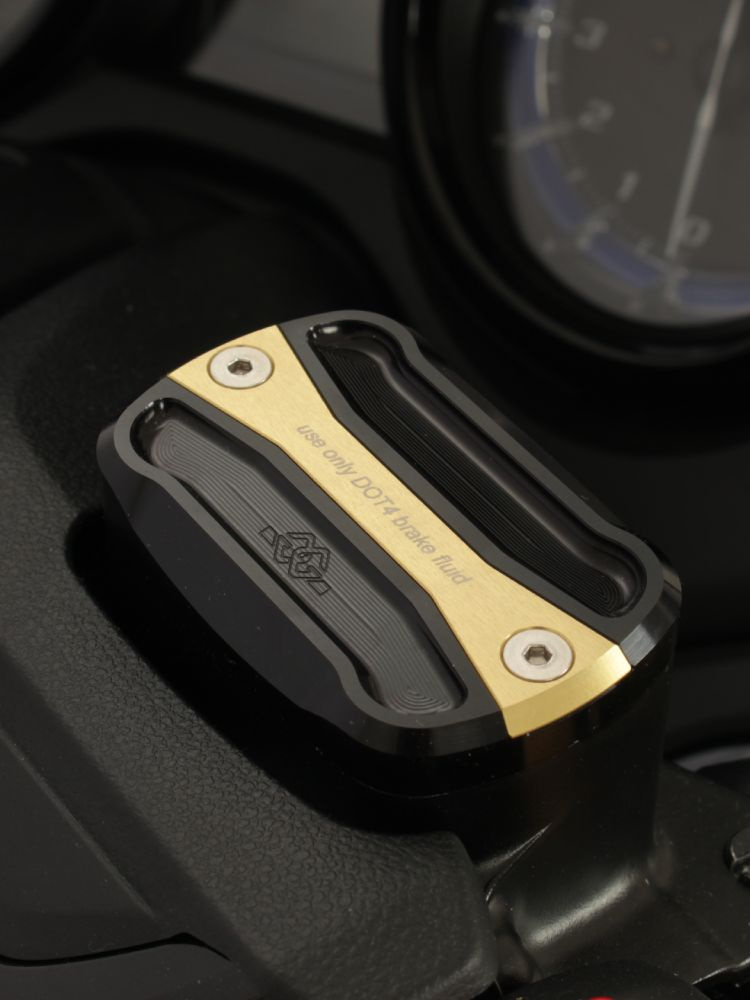 Pokrywa zbiornika płynu hamulcowego GILLES Yamaha XP 530 T-MAX (12-19)/ XP 560 T-MAX (20-22) aluminiowa czarno-złota