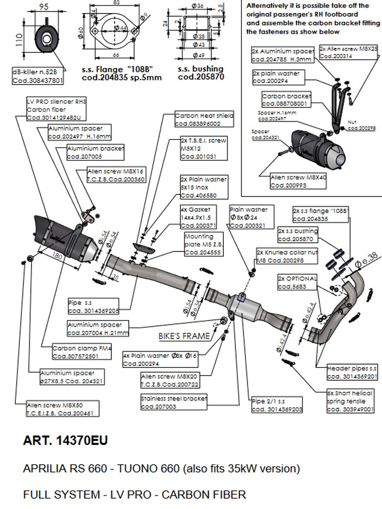 - Waga: 4.30 [kg] (lżejszy od standardowo montowanego tłumika o 2.10 [kg])