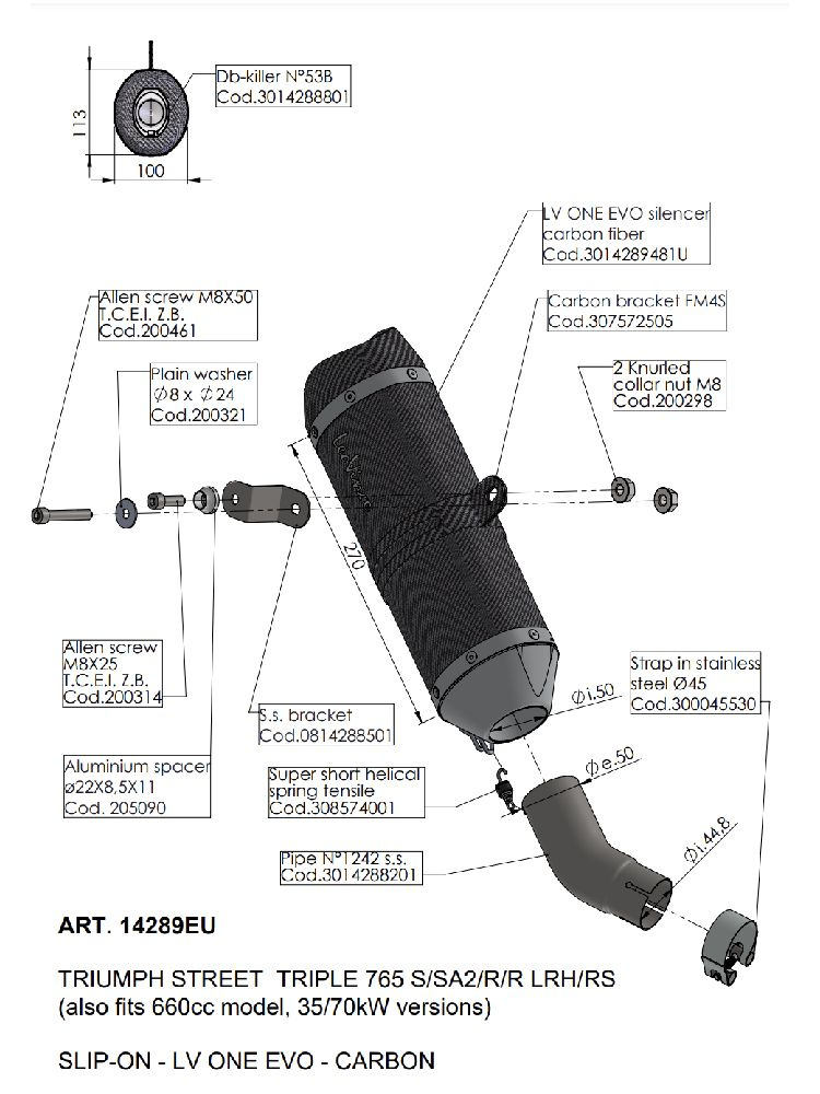 Tłumik motocyklowy LeoVince LV ONE EVO Triumph Street Triple 765 S/SA2/R/R LRH/RS (17-22) czarny [włókno węglowe]
