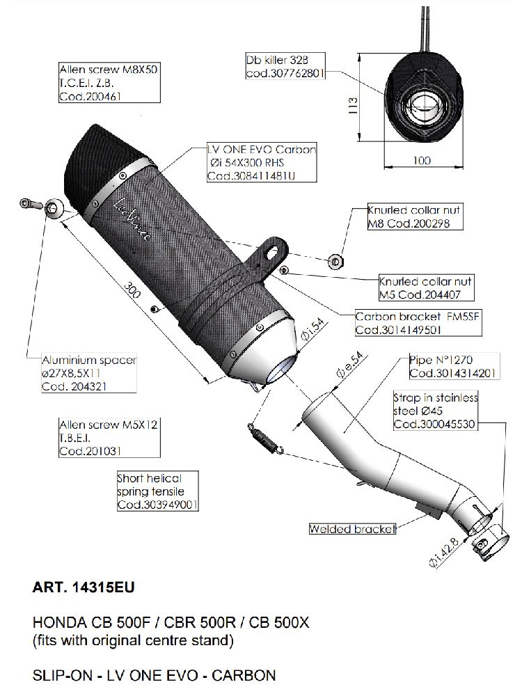 Tłumik motocyklowy LeoVince LV ONE EVO Honda CB 500 F/ X/ CBR 500 R (19-23)/ CB 500 Hornet/ NX 500 (24-) czarny [włókno węglowe]