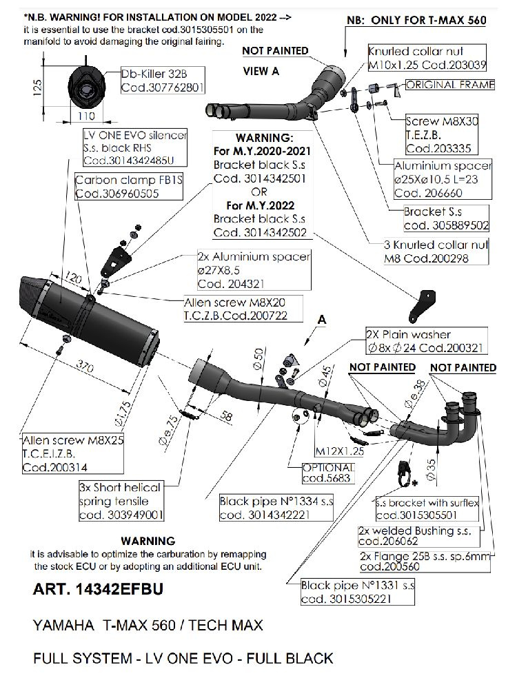 Pełny układ wydechowy LeoVince LV ONE EVO Yamaha T-Max 530 (17-19)/ T-max 560 (20-24) czarny [stal nierdzewna]