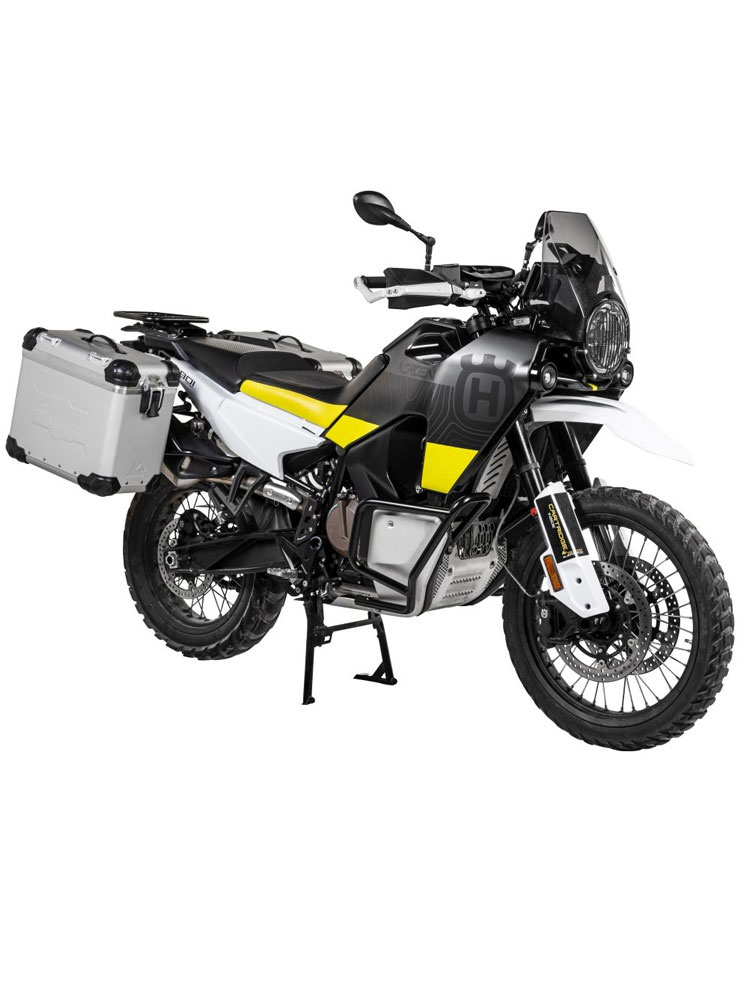 Zestaw: kufry boczne aluminiowe srebrne Zega Evo + stelaże Touratech Husqvarna Norden 901/ Expedition, KTM Adventure 890/ R/ 790/ R [poj.:38+45l]