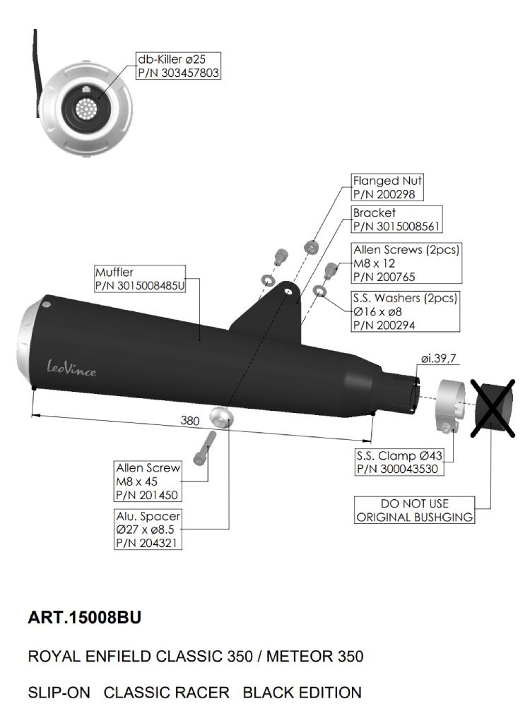Tłumik motocyklowy LeoVince Classic Racer Black Edition Royal Enfield Classic/ Meteor 350 (21-24) czarny [stal nierdzewna]