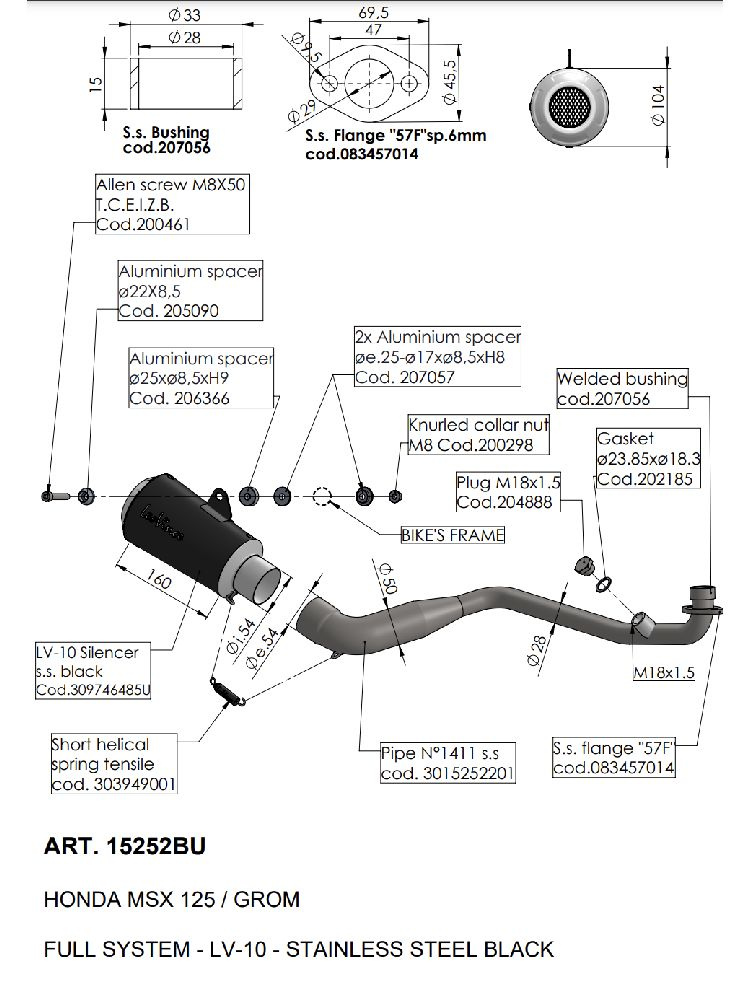 Pełny układ wydechowy LeoVince LV-10 Black Edition Honda MSX 125/ Grom (22-24) czarny [stal nierdzewna]