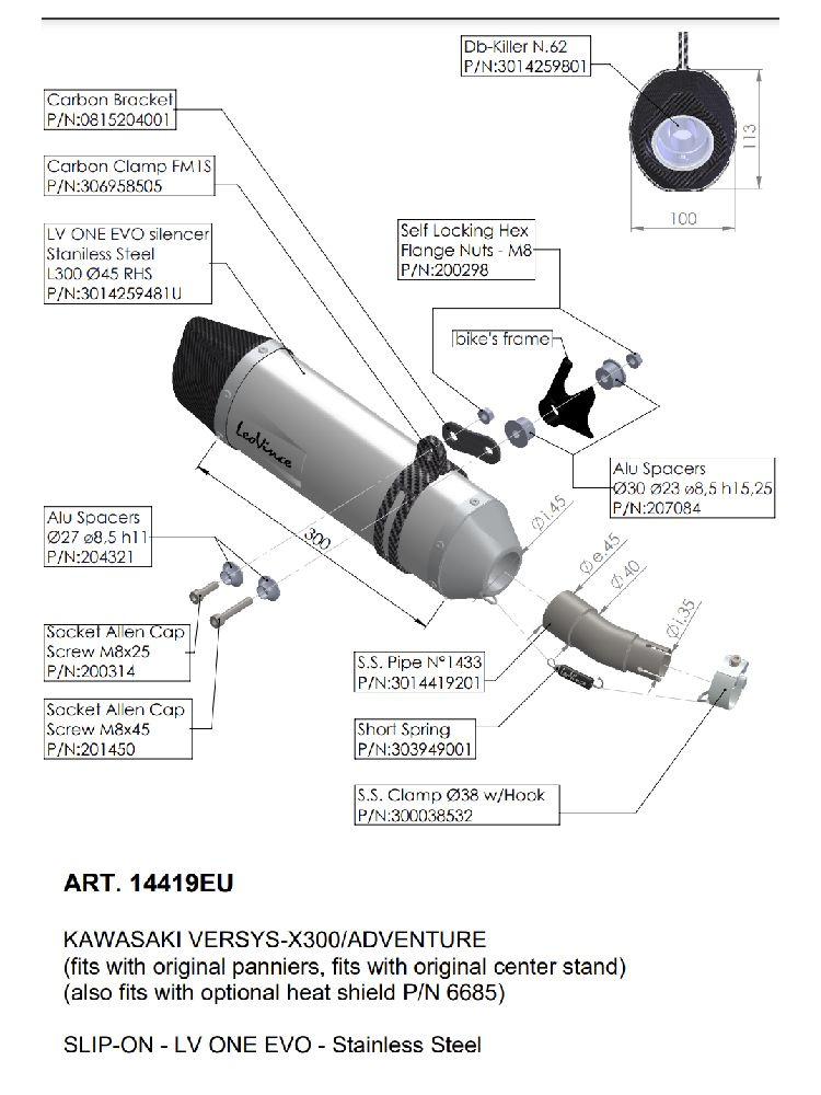 Tłumik motocyklowy LeoVince LV ONE EVO Kawasaki Versys- X 300 (17-22) [stal nierdzewna]