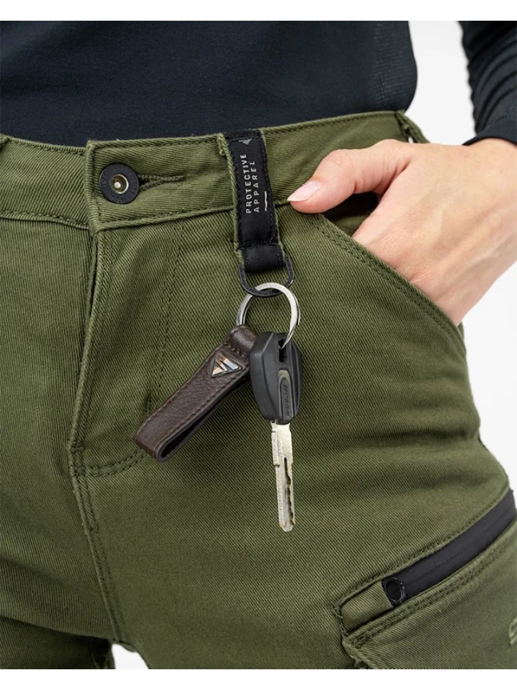 Detale, takie jak praktyczne kieszenie cargo, dodatkowa kieszeń na zamek i uchwyt typu D-loop, sprawiają, że podróżowanie staje się jeszcze wygodniejsze i bardziej zorganizowane. Krótki zamek YKK umożliwia spięcie jeansów motocyklowych damskich SHIMA z kurtką.
