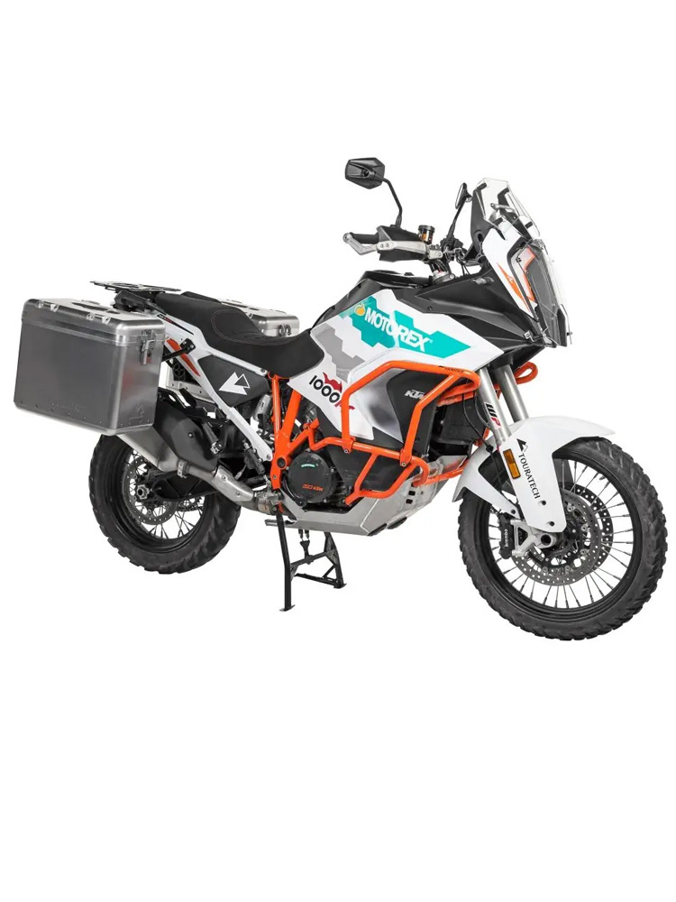 Zestaw: kufry boczne srebrne Zega Mundo + stelaże czarne Touratech KTM Super Adventure 1290 S/R (21-) [poj.: 38+45l]