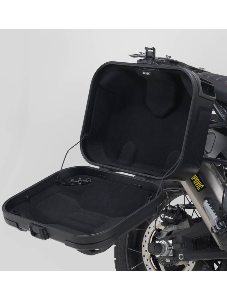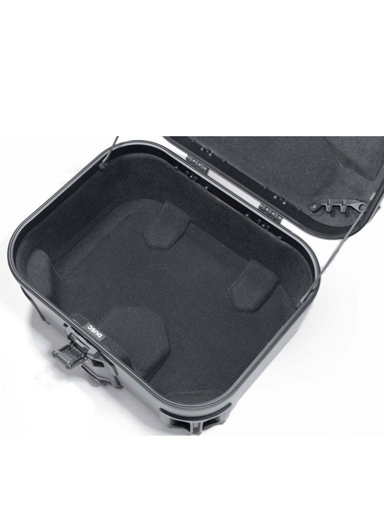 W zestawie znajduje się jedna wyściółka wewnętrzna DUSC M, wykonana z wysokiej jakości materiału EVA, który słynie ze swojej trwałości i odporności na uszkodzenia. Czarny kolor wkładki idealnie komponuje się z kuframi, nadając im nowoczesny i schludny wygląd. Przy wadze wynoszącej około 0,4 kg (około 0,8 funta), wyściółka jest lekka i nie wpływa znacząco na całkowitą wagę walizki, co jest istotne podczas podróży motocyklem.