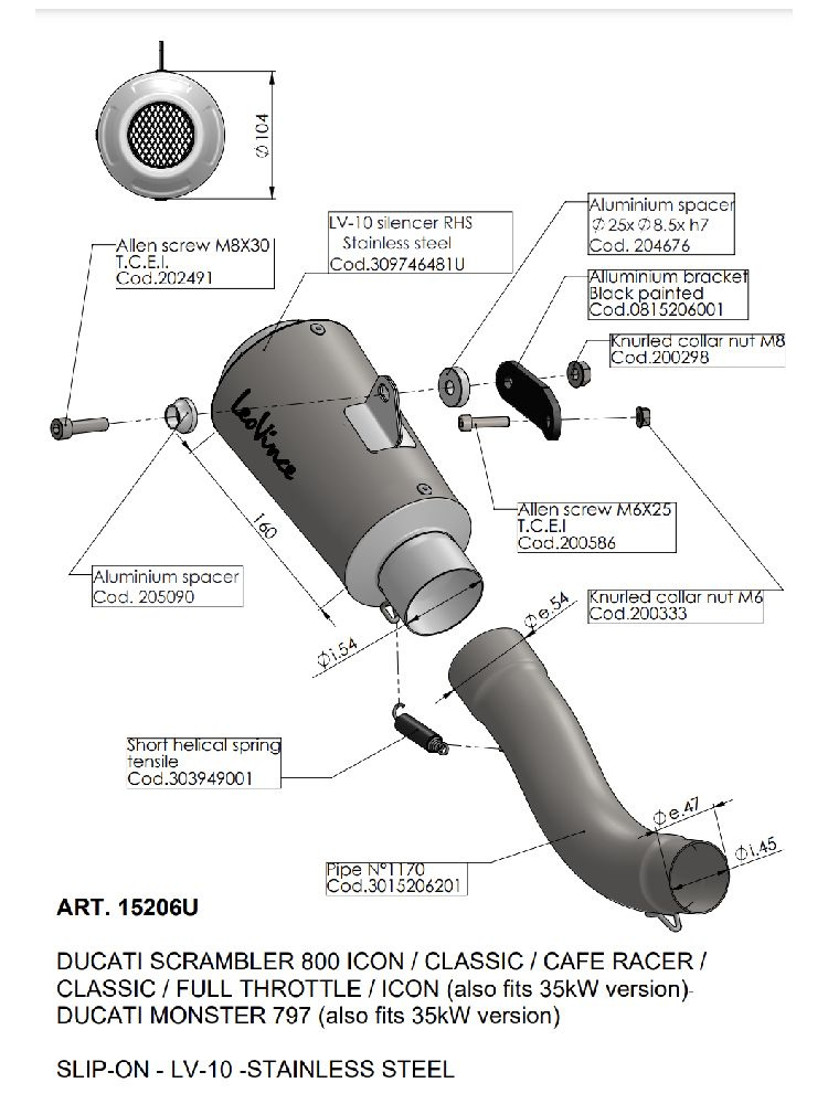 Tłumik motocyklowy LeoVince LV-10 Ducati Scrambler 800/ Cafe Racer/ Full Throttle/ Monster 797 (17-20)/ Scrambler 800 Icon/ Classic (15-20) [stal nierdzewna]