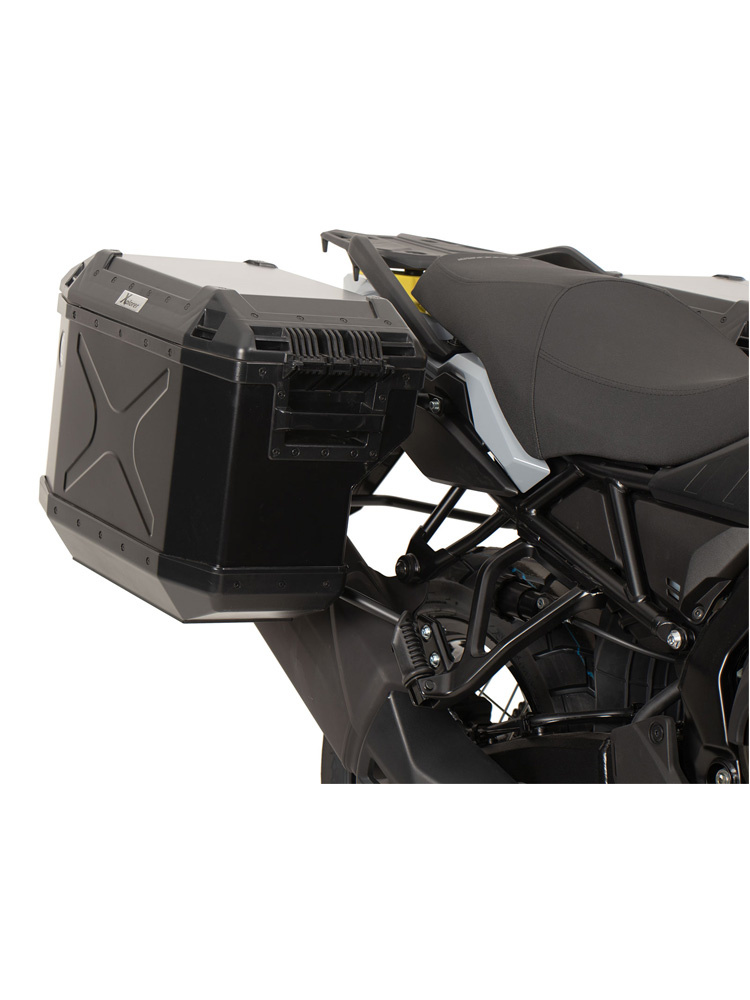 - zestaw kufrów bocznych Xplorer Cutout wraz ze stelażem bocznym (na prawą i lewą stronę) ze stali nierdzewnej,