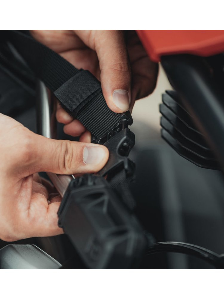 - Mocny pasek na rzep dodatkowo zabezpiecza lewą i prawą sakwę oraz niweluje wagę bagażu