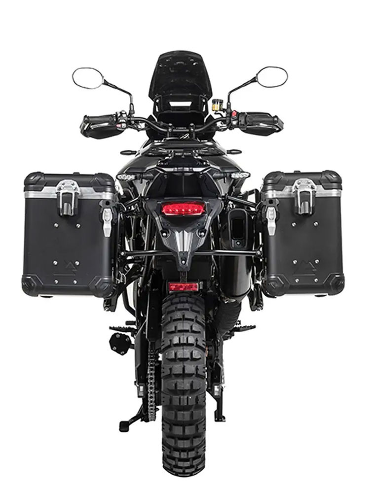 Zestaw: kufry boczne z anodowanego aluminium srebrne "And-Black" Zega Evo + stelaże czarne Touratech Triumph Tiger 900 Rally / Pro / GT / GT Pro (20-) [poj.: 38+45l]