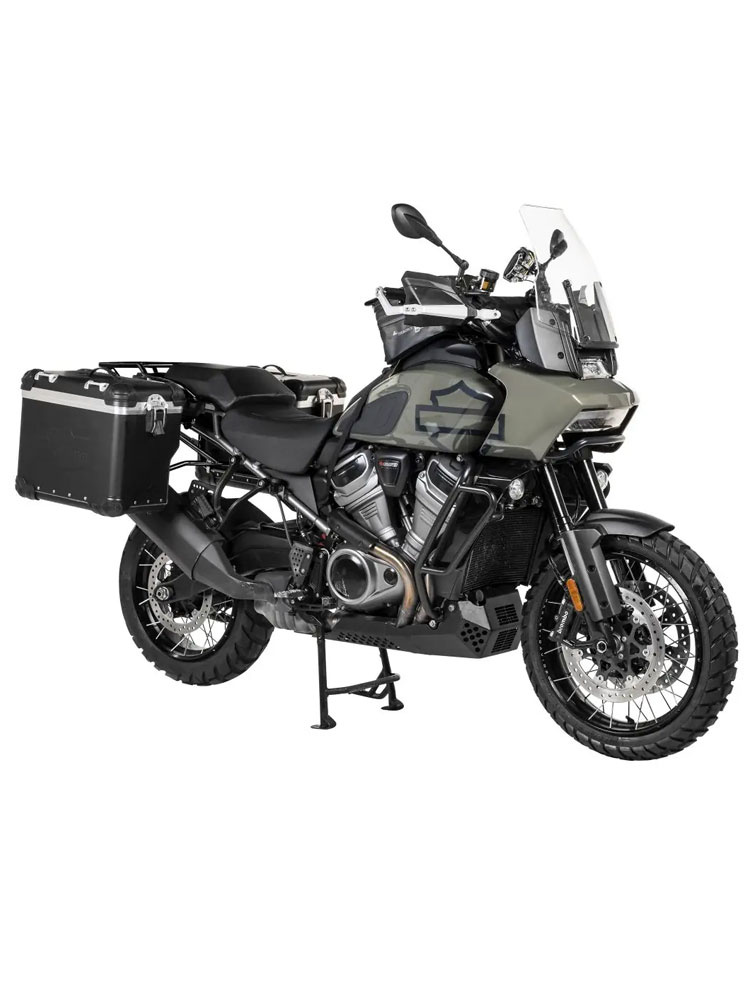 Zestaw: kufry boczne czarne Zega Evo X + stelaże czarne Touratech Harley Davidson RA1250 Pan America (21-) [poj.: 45l+45l]