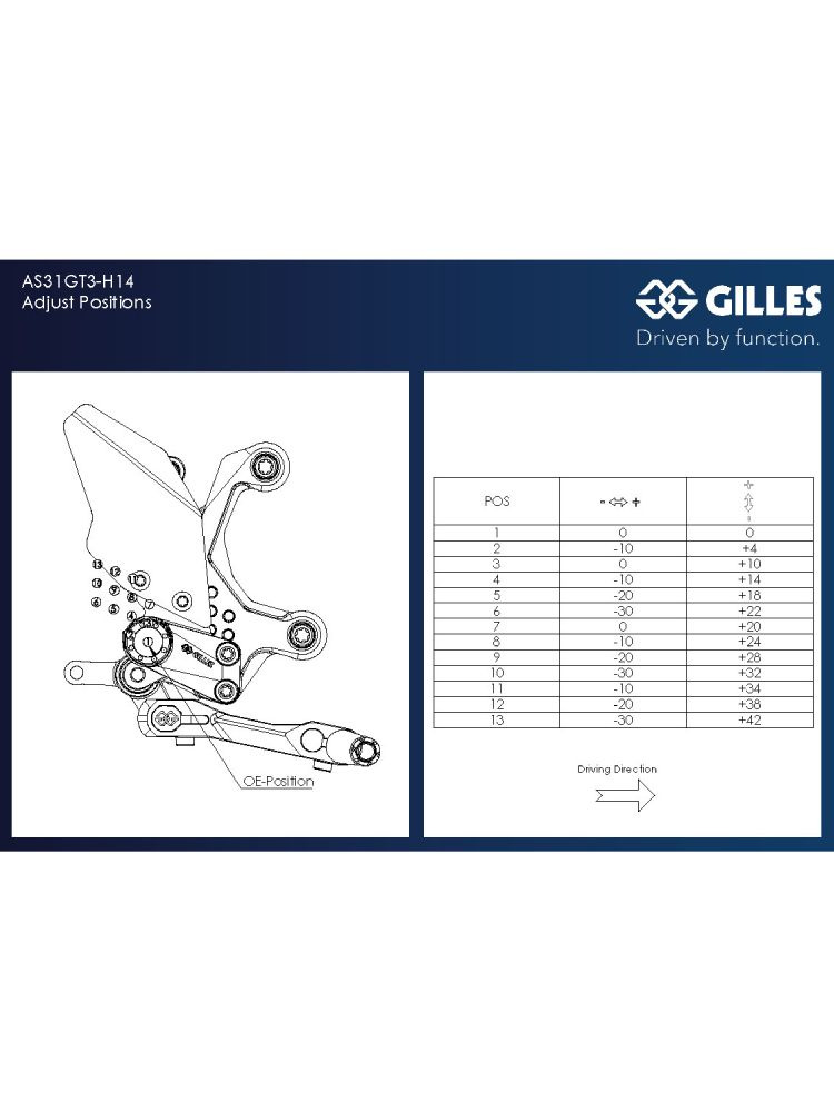 Zestaw regulowanych podnóżków z dźwigniami GILLES AS31GT3-H14 Honda CB 750 Hornet (23-) czarny