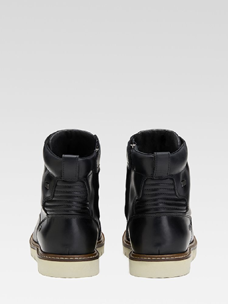 Buty motocyklowe XPD X-Village H2OUT to doskonały wybór dla każdego motocyklisty, który ceni sobie jakość, styl i bezpieczeństwo. Buty są wykonane z wysokiej jakości skóry licowej, która jest olejowana i wodoodporna, co zapewnia odporność na warunki atmosferyczne. Aby zapewnić bezpieczeństwo, buty zostały wyposażone w poliuretanowe ochraniacze kostek oraz wzmocnienia na palcach i pięcie. Dodatkowe skórzane wzmocnienia w miejscu styku z dźwignią zmiany biegów zapewniają trwałość i ochronę w tym newralgicznym obszarze. Komfort użytkowania zapewnia miękka wyściółka polimerowa z pianką zapamiętującą kształt, która doskonale dopasowuje się do stopy. Podeszwa typu Cafè racer/urban wykonana z lekkiej pianki Eva, obszyta skórzaną obwódką, gwarantuje stabilność i wygodę zarówno podczas jazdy, jak i chodzenia. Buty motocyklowe  posiadają wodoodporną i oddychającą membranę H2OUT®, która chroni stopy przed wilgocią, zapewniając jednocześnie odpowiednią wentylację. Oddychająca skórzana wyściółka wewnętrzna z technologią D.F.A. oraz tylny panel ze skóry zapewniają elastyczność i komfort użytkowania. Dla ułatwienia zakładania i zdejmowania butów, wyposażono je w tylną skórzaną pętlę do ciągnięcia oraz zapięcie na rzep, zamek błyskawiczny i woskowane sznurowadła z metalowymi skuwkami. Te elementy zapewniają pewne i stabilne dopasowanie butów do stopy, co jest kluczowe podczas długich podróży motocyklowych.