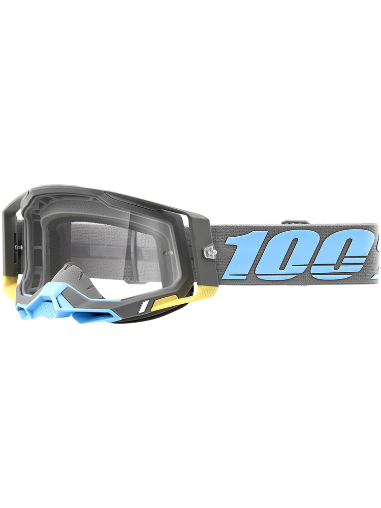 Gogle motocyklowe 100% Racecraft 2 Trinidad z przezroczystą szybką, szaro-niebiesko-żółte