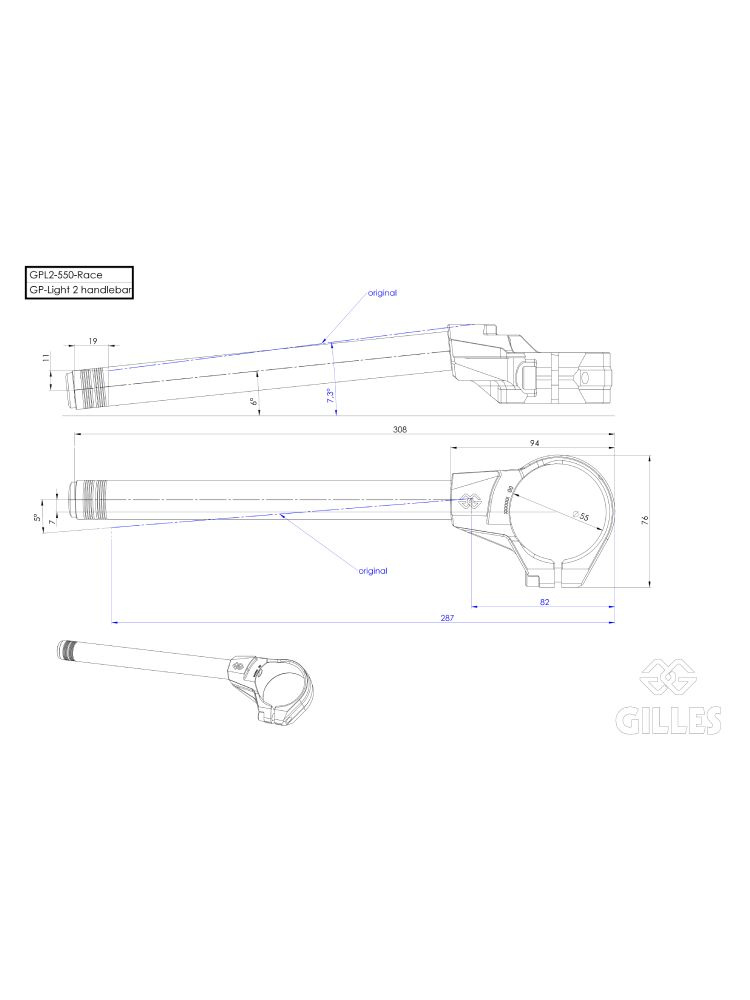 Kierownica clip-on GILLES GPL2-550-RACE BMW S 1000 RR (19-22)/ M 1000 RR (21-22) czarna [średnica: 55mm]