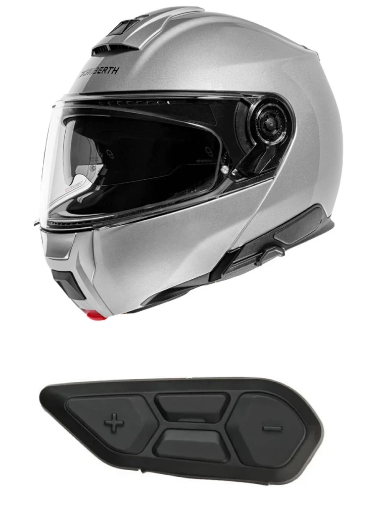 Zestaw: kask szczękowy Schuberth C5 srebrny połysk + dedykowany interkom motocyklowy