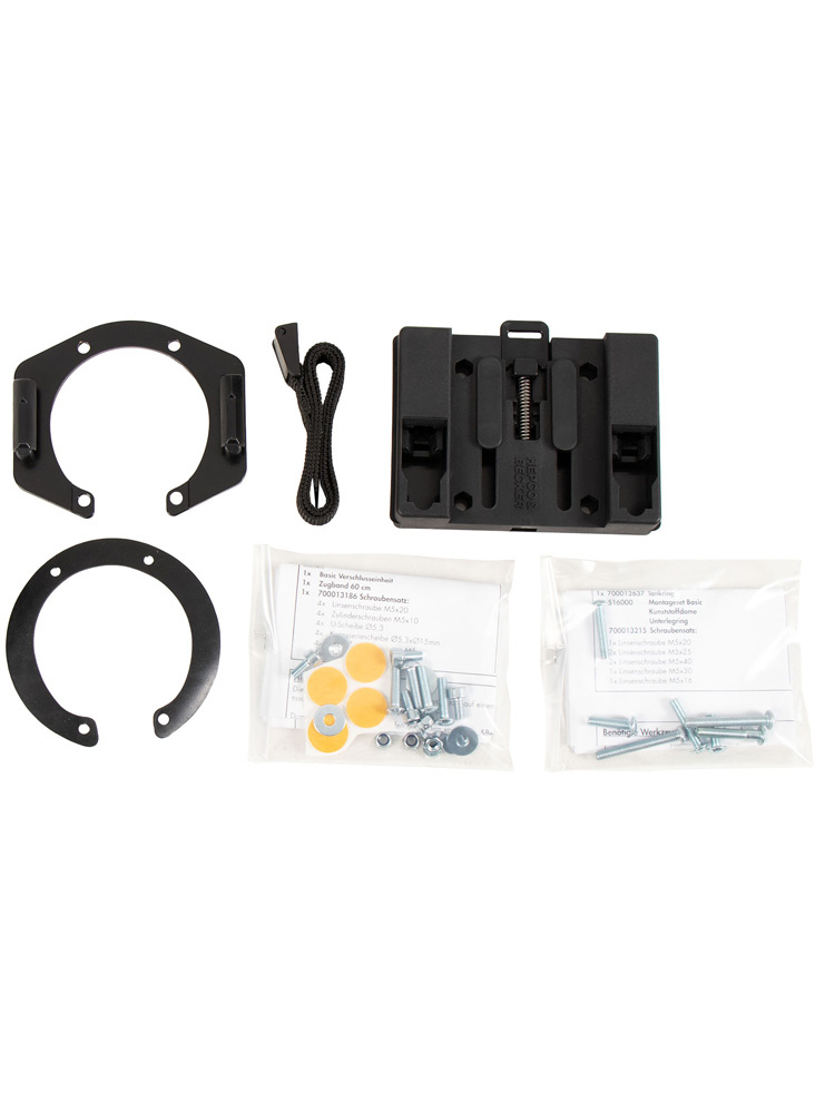 Ogólne funkcje i działanie pozostają takie same. To, co odróżnia mocowanie Basic od mocowania Lock-it, to zmiana z magnetycznego systemu blokowania na system w pełni mechaniczny. Rzeczywisty „metalowy pierścień” specyficzny dla modelu jest taki sam dla obu wersji. Uwaga: Torba na zbiornik z uchwytem Lock-it nie może być umieszczona na pierścieniu zbiornika BASIC i odwrotnie. Uchwyt na zbiornik i pierścień na zbiornik muszą pochodzić z tego samego systemu.