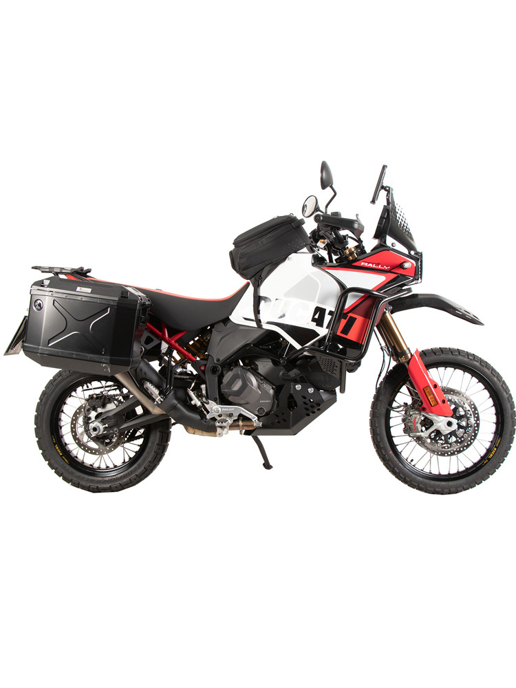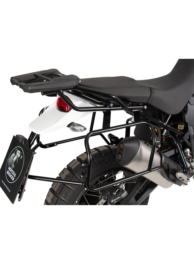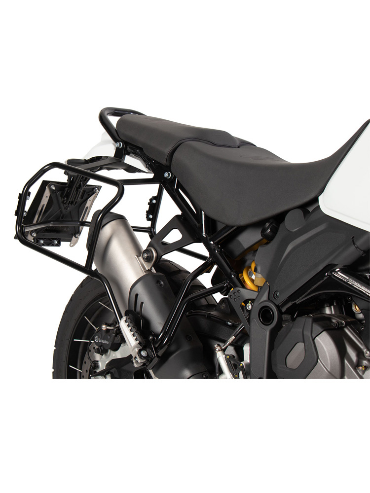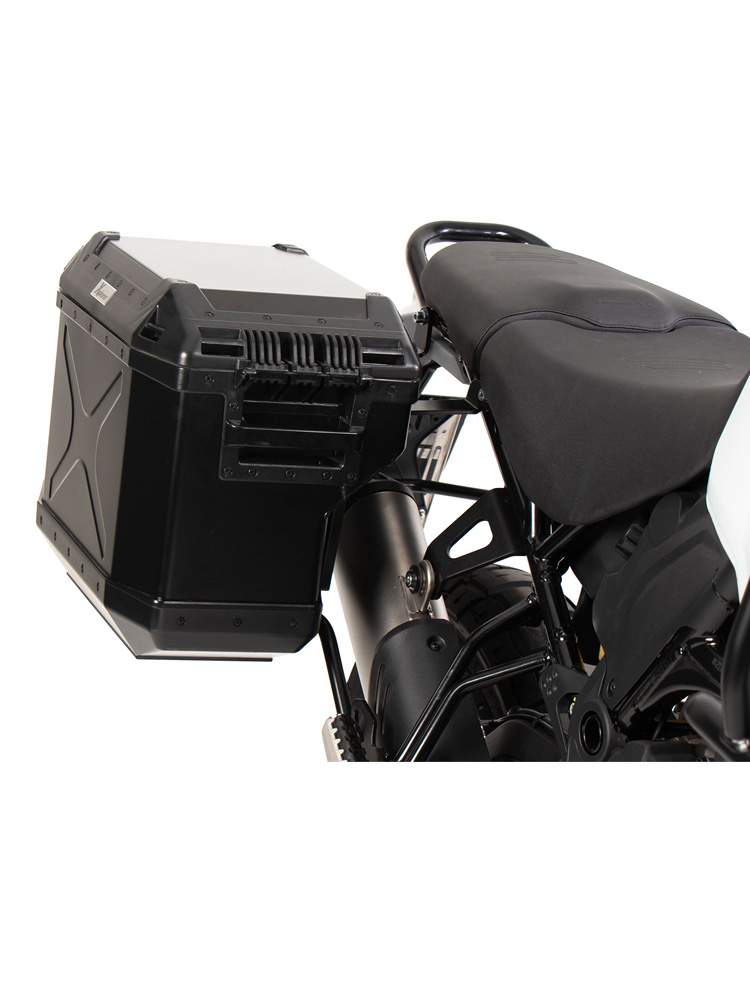 - zestaw kufrów bocznych Xplorer Cutout wraz ze stelażem bocznym (na prawą i lewą stronę) ze stali nierdzewnej,