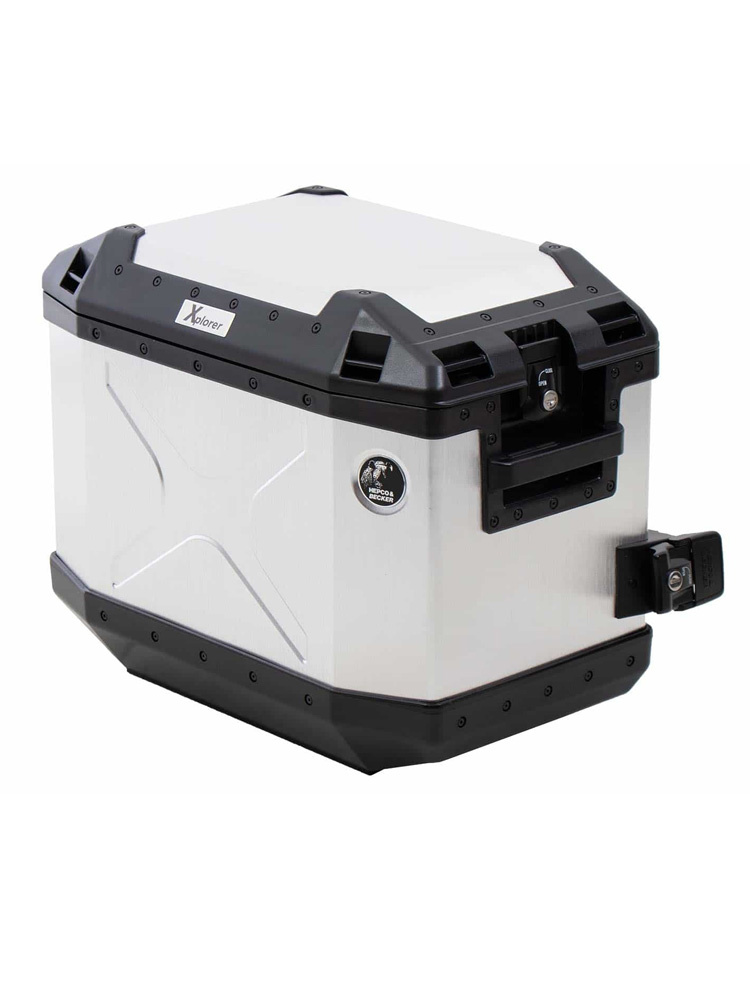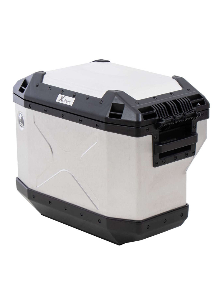 Kufry motocyklowe boczne Hepco&Becker Xplorer zaprojektowane z uwzględnieniem aktualnych trendów stylistycznych łączą elegancję i funkcjonalność, spełniając wymagania współczesnych motocyklistów. Wykonane z wytrzymałego, anodyzowanego aluminium oraz odpornego na uderzenia tworzywa sztucznego, zapewniają trwałość i niezawodność w każdych warunkach. Solidna konstrukcja i wodoszczelność to cechy charakterystyczne tych kufrów. Zaokrąglone krawędzie zapobiegają ewentualnym obrażeniom podczas uderzenia, co zwiększa bezpieczeństwo użytkowania. Duża pokrywa otwierająca się pod kątem 90° umożliwia łatwy dostęp do wnętrza, co jest szczególnie przydatne podczas podróży — zwłaszcza w trakcie pakowania i rozładunku. Kufry są montowane na dedykowanych stelażach marki Hepco & Becker, które gwarantują stabilność i łatwość montażu. Dedykowane do kufrów akcesoria umożliwiają ich personalizację i dostosowanie do indywidualnych potrzeb (akcesoria dostępne osobno). Dzięki starannie zaprojektowanym i wykonanym detalom kufry motocyklowe boczne Hepco&Becker Xplorer stanowią doskonałe uzupełnienie każdego motocykla — niezależnie od warunków, w których będzie podróżował, spełnią swoje zadanie, oferując przestrzeń, trwałość i nowoczesny design.