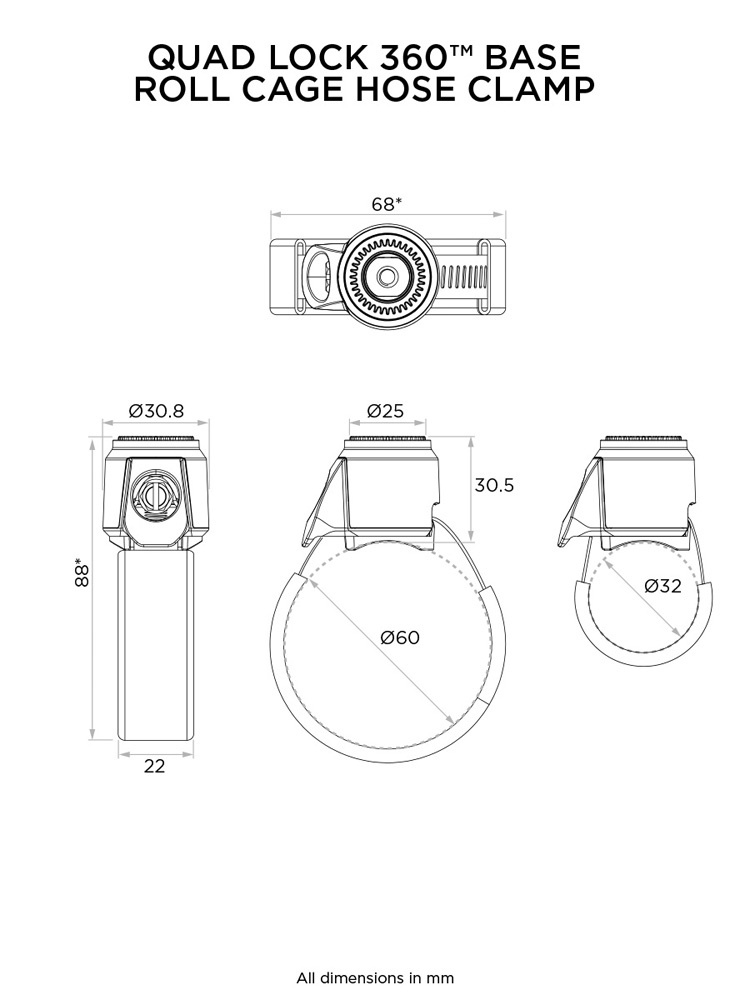 Informacje o mocowaniu Quad Lock 360 do rur o średnicy od 32 [mm] do 60 [mm]:
