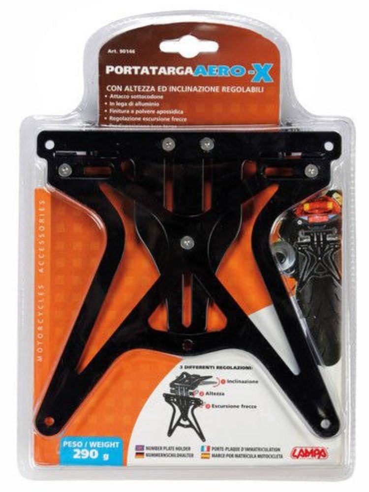 Uniwersalne mocowanie tablicy rejestracyjnej Lampa Aero-X z regulacją wysokości, szerokości i nachylenia aluminiowe czarne
