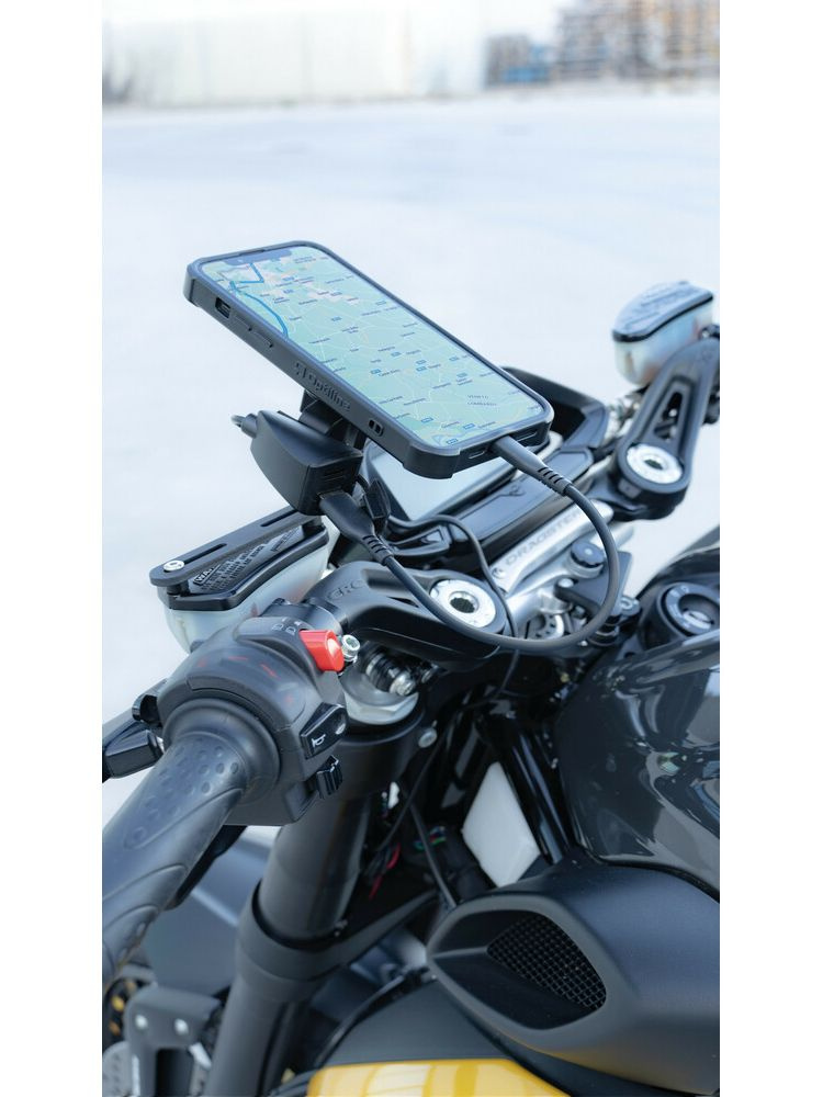 Podwójna, wodoodporna ładowarka USB Lampa Usb-Fix Trek z mocowaniem do kierownicy motocykla [szybkie ładowanie; 5400 mA; 12/24 V]