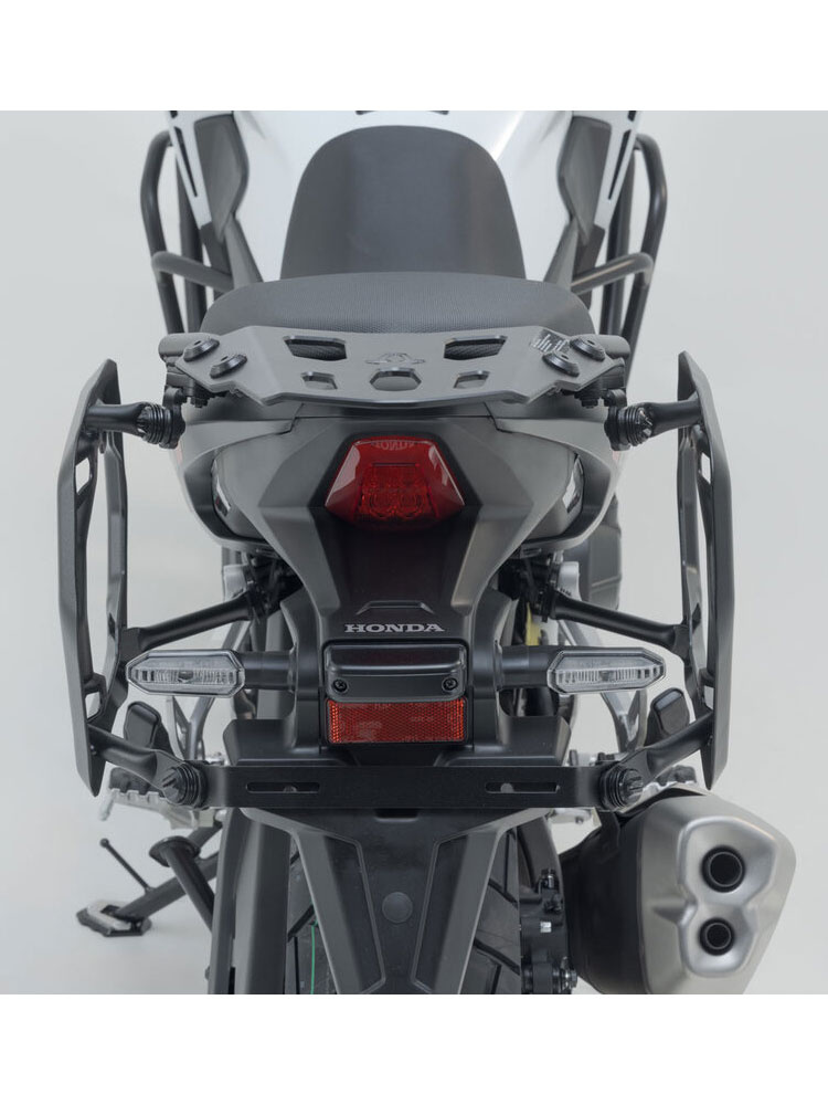 Zestaw: kufry boczne 45/45/38 + kufer centralny TRAX ADV + stelaże SW-MOTECH Honda CB 500 X (13-)/ NX500 (23-) [pojemność: 2 x 45l + 38l] srebrne