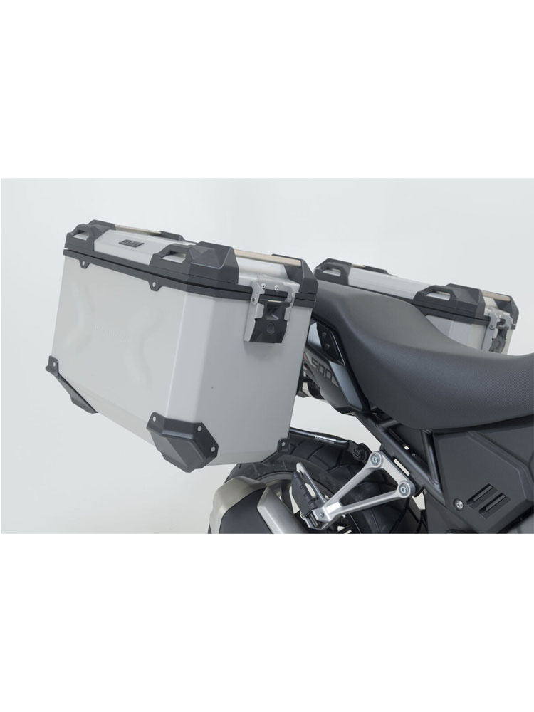 Ten zestaw to wszechstronny i bezobsługowy pakiet na każdą wycieczkę. Wodoszczelne i pyłoszczelne aluminiowe kufry TRAX ADV, czyli dwa kufry boczne i centralny zapewniają najlepszą ochronę bagażu. Dedykowane dla danego modelu motocykla stelaże na kufry boczne PRO oraz stelaż na kufer centralny STREET-RACK gwarantują optymalne dopasowanie i bezpieczne zamocowanie aluminiowych kufrów. Nasze wytrzymałe aluminiowe kufry TRAX ADV przekonują swoją stabilnością, nieprzepuszczalnością wody i pyłu, eleganckim stylem, przemyślanymi funkcjami i dużym wyborem dodatkowych akcesoriów. Aby jeszcze zwiększyć pojemność ładunkową, zestaw Adventure zawiera dwie akcesoryjne torby TRAX M / L. Są one mocowane na pokrywy kufrów bocznych. Torby te są wodoszczelne, a bagaż w nich schowany będzie bardzo szybko dostępny.