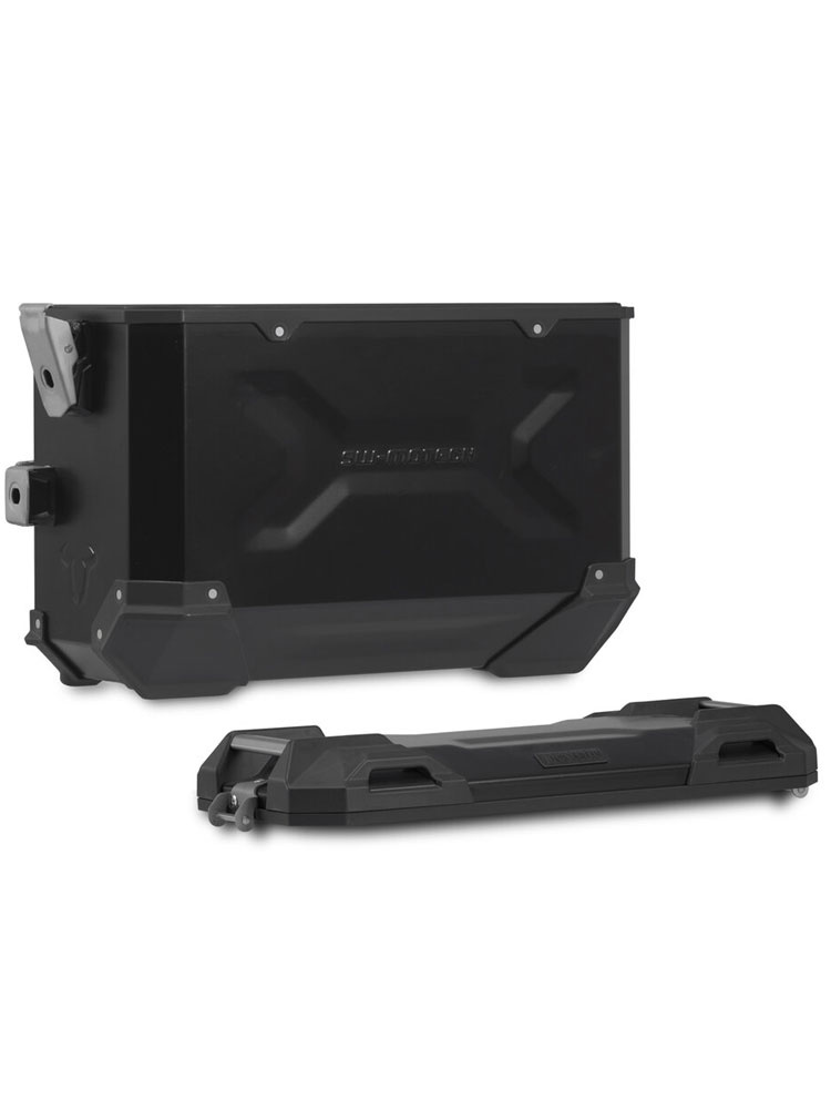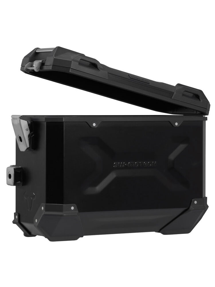Wytrzymałe aluminiowe kufry TRAX ADV sprawiają, że czujesz się jak w domu na każdym odcinku drogi: wytłoczone wzory zwiększają stabilność spawanego aluminium o grubości 1,5 milimetra. Całkowicie zdejmowana pokrywa z uchwytami wykonanymi z anodyzowanego aluminium oraz zapięcie błyskawiczne ułatwiają załadunek i rozładunek bagażu motocyklowego; fazowana krawędź boczna zapewnia duży prześwit podczas pokonywania zakrętów. Stelaż i wielkość kufrów są idealnie dopasowane do tylnego kształtu i układu wydechowego motocykla. Przy rozwoju TRAX ADVENTURE pojawiło się następujące wyzwanie. Zbudować kufry, które pokonają wszystkie przeszkody motocyklowej codzienności, lekkie i łatwe w obsłudze, po prostu dobre: od praktycznego zamka błyskawicznego, przez zdejmowalną pokrywę, po ergonomiczny uchwyt. TRAX ADVENTURE łączą wysoką jakość z niską wagą. Ważą tylko od 4,6kg do 5,4 kg, czyli należą do grupy najlżejszych kufrów w swojej klasie.