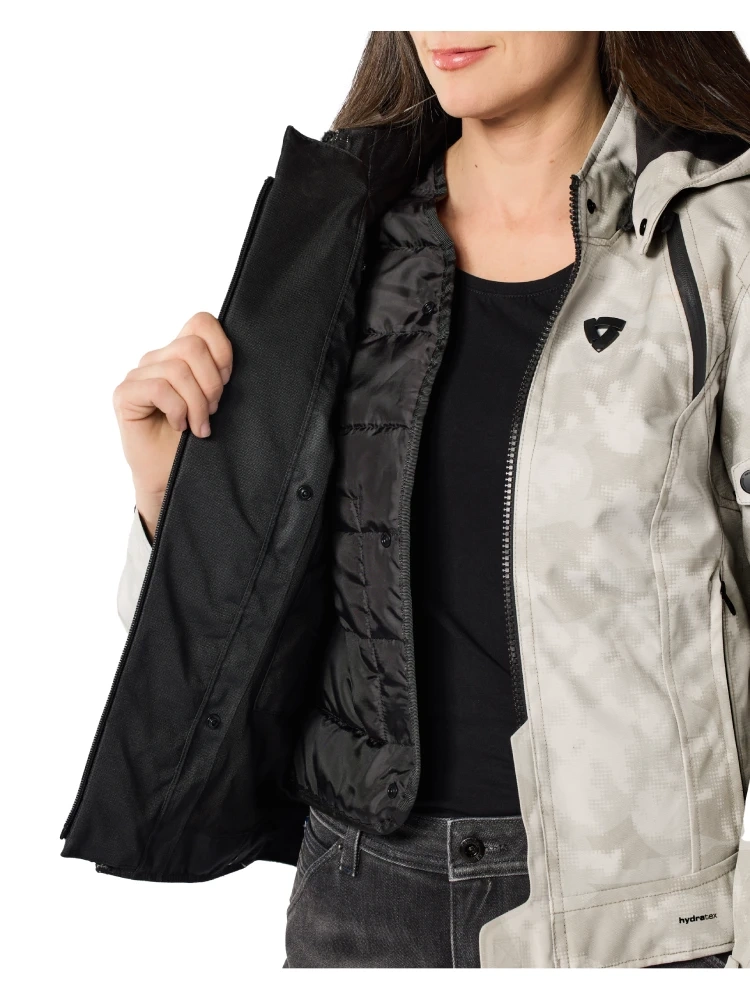 - membrana Hydratex®|G-liner - wodoodporną membranę nakładaną na wewnętrznej warstwie odzieży wzmocniono klejonymi szwami w celu zapewnienia wodoodporności. The REV'IT! Hydratex® | G-liner zapewnia podstawową ochronę w każdych warunkach pogodowych