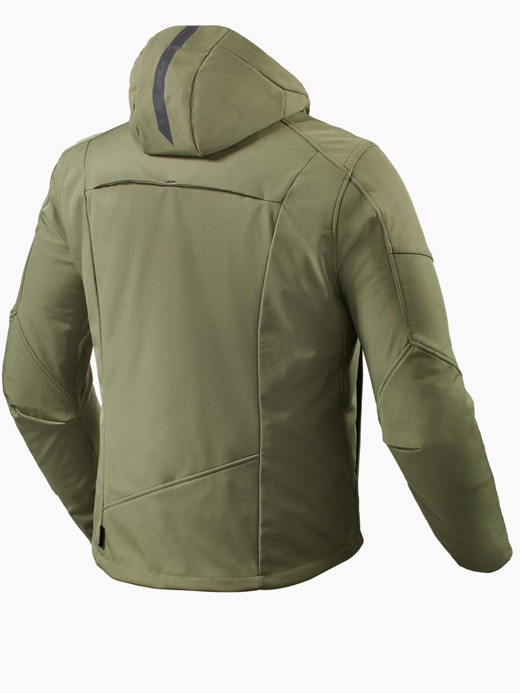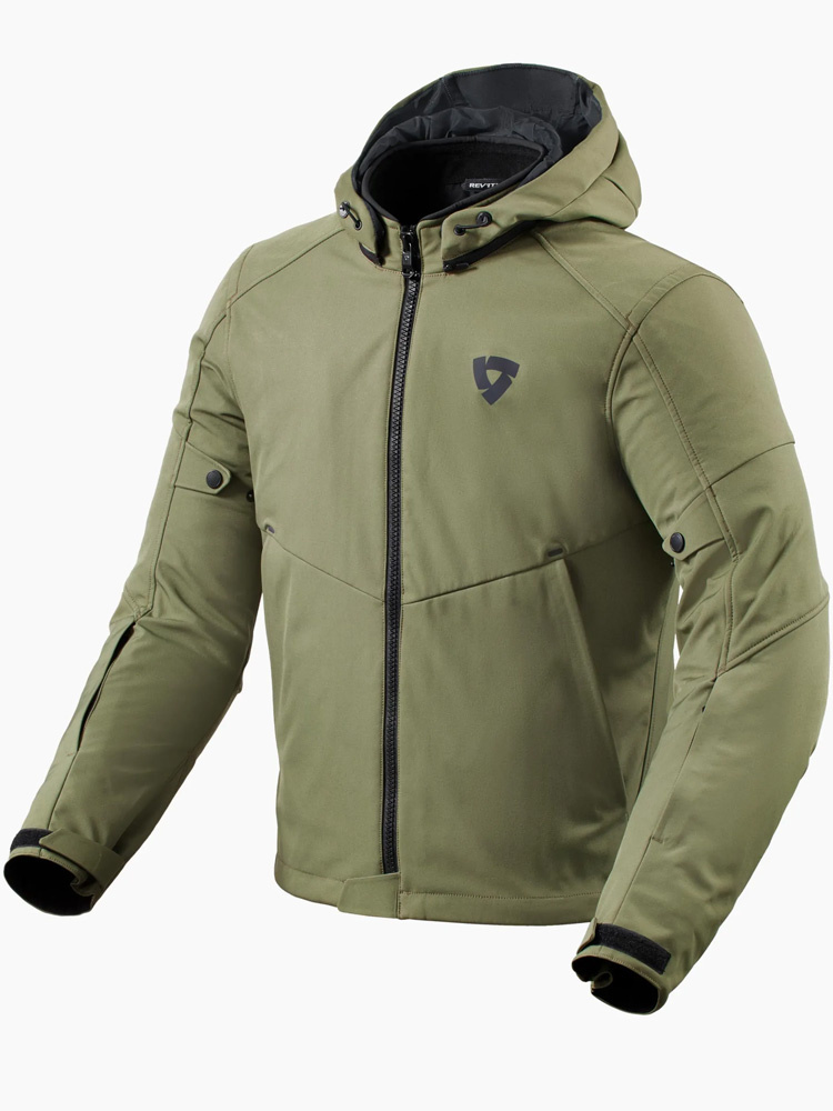 Kurtka motocyklowa tekstylna REV’IT! Afterburn H2O jest jednym z modeli, który doskonale poradzi sobie w okresie przejściowym zapewniając wygodną i bezpieczną jazdę. Do uszycia kurtki wykorzystano elastyczny i trwały softshell, który chroni przed przetarciem i jednocześnie zapewnia swobodę ruchu. Wewnątrz umieszczona jest membrana Hydratex®, która stanowi bardzo dobra osłonę przed deszczem i nieprzyjemnym wiatrem. Podczas jazdy w niskich temperaturach komfort termiczny zapewni wyjmowana podpinka ocieplająca. Kurtka posiada także odpinany kaptur z odblaskowym logo, który oferuje dodatkową ochronę przed niekorzystnymi warunkami atmosferycznymi. Na ramionach i łokciach umieszczone są certyfikowane ochraniacze Seesmart, które nie ograniczają ruchów i doskonale chronią przed energią uderzenia. Producent umieścił w kurtce wewnętrzną kieszeń na dedykowany ochraniacz pleców Seesoft, który zwiększy obszar ochrony. Na rękawach umieszczone są zamki wentylacyjne, które pozwalają na dopływ chłodniejszego powietrza. Poprzez otwory na plecach wydalane jest ciepłe i wilgotne powietrze. Idealne dopasowanie uzyskamy za pomocą systemu regulacji na rękawach, mankietach i dole kurtki. Łącząc tekstylną kurtkę motocyklową tekstylną Afterburn H2O ze spodniami lub jeansami za pomocą zamka lub pętelki zapobiegniemy jeździe z odsłoniętymi plecami.