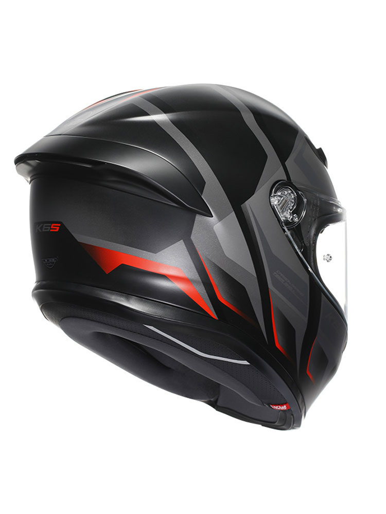 Kask integralny AGV K6 S to kask motocyklowy, który wyróżnia się uniwersalnością. Został opracowany na bazie bestsellerowego modelu K6, lecz dodatkowo został wzbogacony o zintegrowany spojler, który zapewnia doskonałe osiągi aerodynamiczne przy wysokich prędkościach Skorupa kasku została zaprojektowana w tunelu aerodynamicznym tak, aby zapewnić najlepszą aerodynamikę oraz odporność przed turbulencjami przy wysokich prędkościach. Sama skorupa została skonstruowana z włókna aramidowego oraz węglowego, które nadają wytrzymałość oraz obniżają wagę całego kasku. Istotny elementem każdego kasku jest odpowiednia wentylacja powietrza. W kasku motocyklowym AGV K6 S optymalną cyrkulację powietrza zapewnią przednie wloty oraz jeden, szeroki tylny wylot powietrza, dodatkowo wspierane otworami wentylacyjnymi. Wizjer pierwszej klasy optycznej zapewni znakomite pole widzenia zarówno w dzień, jak i podczas nocnych wypraw motocyklowych. Wyjmowane w całości wnętrze kasku zostało przystosowane do noszenia okularów oraz możliwości montażu systemu komunikacji AGV ARK oraz szereg innych rozwiązań technologicznych oraz zastosowanych materiałów zapewnią komfort użytkowania na najwyższym poziomie. Zapięcie typu DD(Double-D) umożliwia bezpieczne zapięcie kasku.