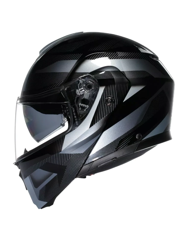 AGV Streetmodular to szczękowy kask motocyklowy, który sprawi, że podróże motocyklowe wskoczą na zupełnie inny poziom. Cała konstrukcja wyróżnia się solidnością i wytrzymałością, dzięki zastosowaniu tworzywa termoplastycznego HIR-TH (High Resistance Thermoplastic). W aspekcie bezpieczeństwa warto również wspomnieć o tym, że w wewnętrznej części kasku znajdziemy piankę EPS dostępną w trzech rozmiarach. Pozostając przy temacie wnętrza kasku szczękowego Streetmodular należy wspomnieć o antybakteryjnej wyściółce 2Dry, która odpowiada za optymalne odprowadzanie wilgoci. Ponadto jest ona w pełni wyjmowana, dzięki czemu w łatwy sposób można ją poddać procesowi prania. Istotnym elementem tego modelu jest odporny na zarysowania (powłoka Anti-Scratch) wizjer, który przystosowano do montażu Pinlocka (dostępny w zestawie). Za pomocą mechanizmu XQRS (Extra Quick Release System) szybkę można błyskawicznie wymienić bez użycia narzędzi, a cały proces potrwa zaledwie kilka sekund. Projektanci kasku pomyśleli również o podróżowaniu motocyklem w słoneczne dni, dlatego w tym modelu znajdziemy również blendę przeciwsłoneczną. W kasku szczękowym AGV Streetmodular mamy do czynienia z zapięcie mikrometrycznym, które jest bardziej znane pod nazwą MicroLock.