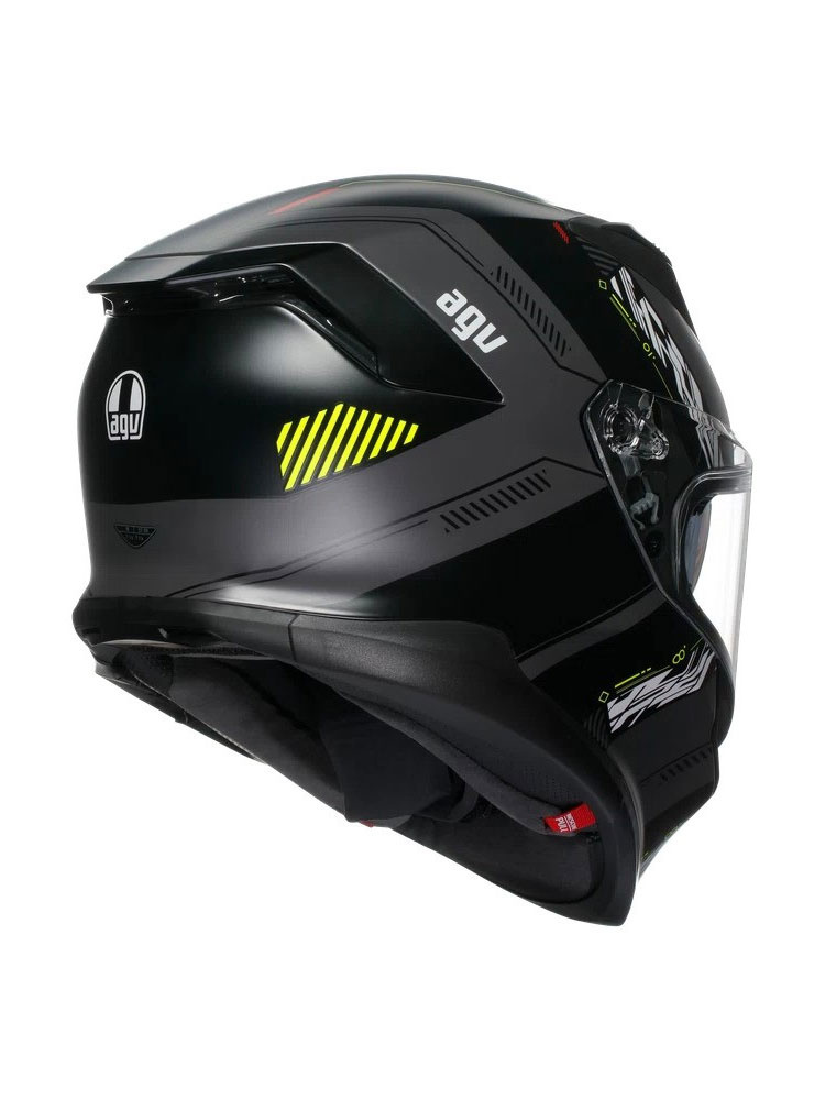AGV K7 to zaawansowany kask motocyklowy integralny, który łączy w sobie nowoczesne technologie oraz maksymalny komfort i bezpieczeństwo. Jego skorupa wykonana jest z połączenia włókna węglowego i aramidowego, co gwarantuje lekkość oraz wyjątkową wytrzymałość. Dostępny jest w trzech rozmiarach skorupy, zapewniając tym samym idealne dopasowanie do każdej głowy. Kask ten oferuje wyjątkową cyrkulację powietrza, dzięki zaopatrzeniu w otwory wlotowe i wylotowe. Ważnym elementem konstrukcji jest aerodynamiczny spojler, który sprawia, że kask utrzymuje stabilną pozycję na głowie motocyklisty przy wysokich prędkościach. Szerokie pole widzenia w różnych warunkach pogodowych zapewnia panoramiczny wizjer, wyposażony w Pinlocka 120 Max Vision. Wewnętrzna część kasku została wyposażona w wyściółkę z materiału Shalimar, poduszki policzkowe z tkaniny Ritmo oraz wyjątkowy materiał DrySpeed, który wywołuje efekt natychmiastowego wchłaniania potu. Kask integralny AGV K7 jest przystosowany do jazdy w okularach korekcyjnych, a także pozwala na użytkowanie interkomu motocyklowego AGV INSYDE. Zapięcie Microlock zapewnia szybkie i bezpieczne zamknięcie kasku. Model ten posiada homologację ECE 22.06, co oznacza, że kask opracowano zgodnie z europejskimi normami bezpieczeństwa.