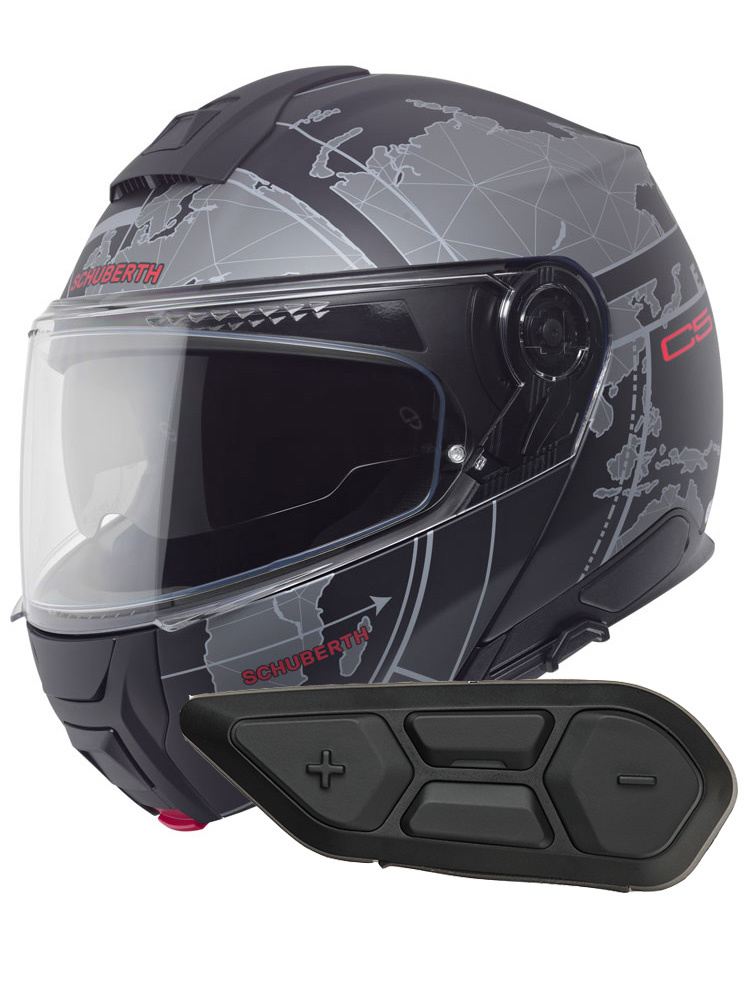 Zestaw: kask szczękowy Schuberth C5 Globe czarno-szary + dedykowany interkom motocyklowy