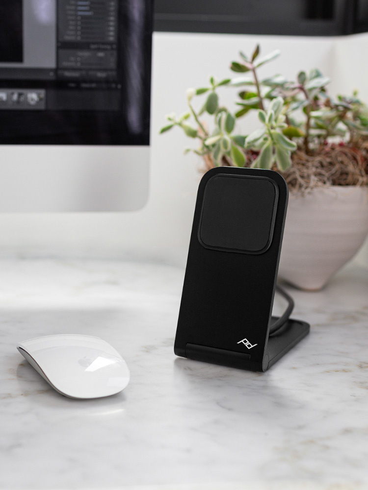 - Ładowanie bezprzewodowe może nie być możliwe lub optymalne przy użyciu Uniwersalnego Adaptera Peak Design Mobile