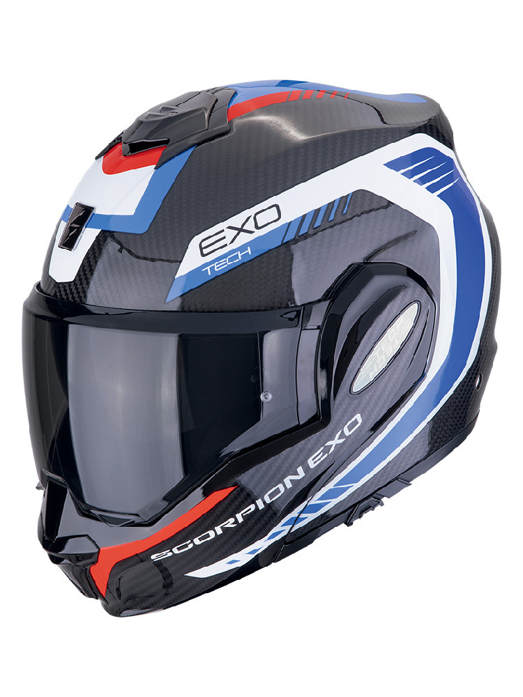 Kask szczękowy Scorpion Exo-Tech Evo Carbon Cosy czarno-niebiesko-czerwony