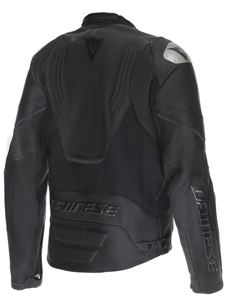 Dainese Racing 5 to skórzana kurtka motocyklowa, stworzona dla fanów sportowej jazdy. Wykonana ze skóry bydlęcej Tutu oraz tkaniny S1, dzięki czemu charakteryzuje się niezwykłą trwałością i odpornością na przetarcia. Ta kurtka motocyklowa skórzana została opracowana również dla wymagających motocyklistów, którzy oczekują wysokiego poziomu bezpieczeństwa. Racing 5 wyposażono w certyfikowane protektory, które rozmieszczono na ramionach i łokciach. Ponadto, kurtka posiada wymienne osłony aluminiowe na barkach oraz zwiększające widoczność po zmroku odblaskowe elementy. To wszystko sprawia, że użytkownik może być spokojny o swoje bezpieczeństwo i całą swoją uwagę skupić na wydajnej jeździe motocyklem. W temacie komfortu użytkowania należy wspomnieć m.in.: o przyjemnym w dotyku skórzanym kołnierzu Veloce, zapewniającym pełną swobodę ruchów elastycznym wstawkom oraz regulacji w pasie. Miejscowa perforacja sprawia, że kurtka motocyklowa skórzana Dainese Racing 5 jest dobrze wentylowana, co przekłada się na komfort termiczny w wysokich temperaturach. Długi suwak daje możliwość połączenia kurtki razem ze spodniami, dzięki czemu otrzymujemy dwuczęściowy kombinezon motocyklowy.