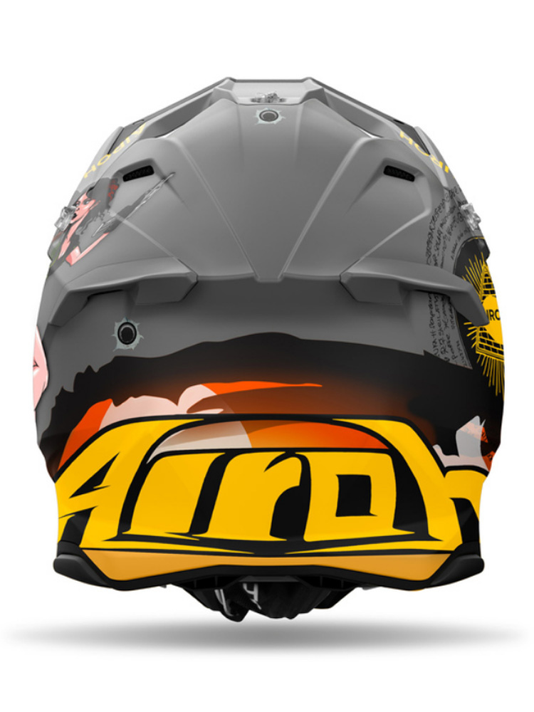 Airoh Twist 3 to kask enduro, który łączy w sobie doskonałą ochronę, wygodę oraz innowacyjne rozwiązania technologiczne, zapewniając użytkownikowi pełne bezpieczeństwo i komfort podczas jazdy. Jego trwała skorupa wykonana z materiału H.R.T. (High Resistant Thermoplastic) gwarantuje wyjątkową wytrzymałość na wszelkie warunki terenowe. Ukryty wewnątrz skorupy system ASN (Airoh Sliding Net) pozwala na przesuwanie się wyściółki podczas uderzenia dzięki czemu absorbuje energię i minimalizuje siły działające na głowę. Kask wyposażony został w spoiler umieszczony w tylnej części. Poprawia on aerodynamikę oraz stabilizuje głowę przy większych prędkościach. Niezwykle istotnym elementem kasku jest zapięcie typu DD, które gwarantuje stabilną pozycję kasku. Wyściółka, wyposażona w podwójną warstwę materiału 3D mesh, zapewnia suchość i wygodę nawet podczas długich tras. W pełni wypinane hipoalergiczne wnętrze zapewnia wyjątkowy komfort użytkowania. Dodatkowo, system A.E.F.R. (Airoh Emergency Fast Remove) umożliwia szybkie i bezpieczne wyjęcie poduszek policzkowych w przypadku awaryjnej sytuacji. Wloty powietrza ulokowane w górnej części kasku, na czole i szczęce w połączeniu z wylotami ciepłego powietrza tworzą system, który sprawnie wymienia powietrze wewnątrz kasku motocyklowego i zapobiega parowaniu gogli. Model ten przystosowany został do montażu interkomu.