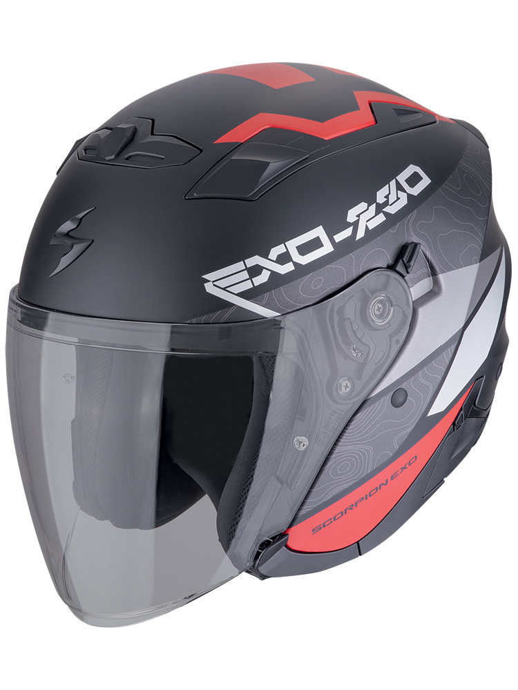 Kask otwarty Scorpion Exo-230 Band czarno-czerwono-srebrny matowy
